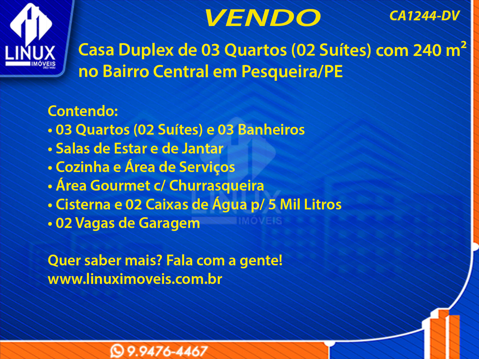 Casa Duplex de 03 Quartos (02 Suítes) com 240 m² no Bairro Central em Pesqueira/PE