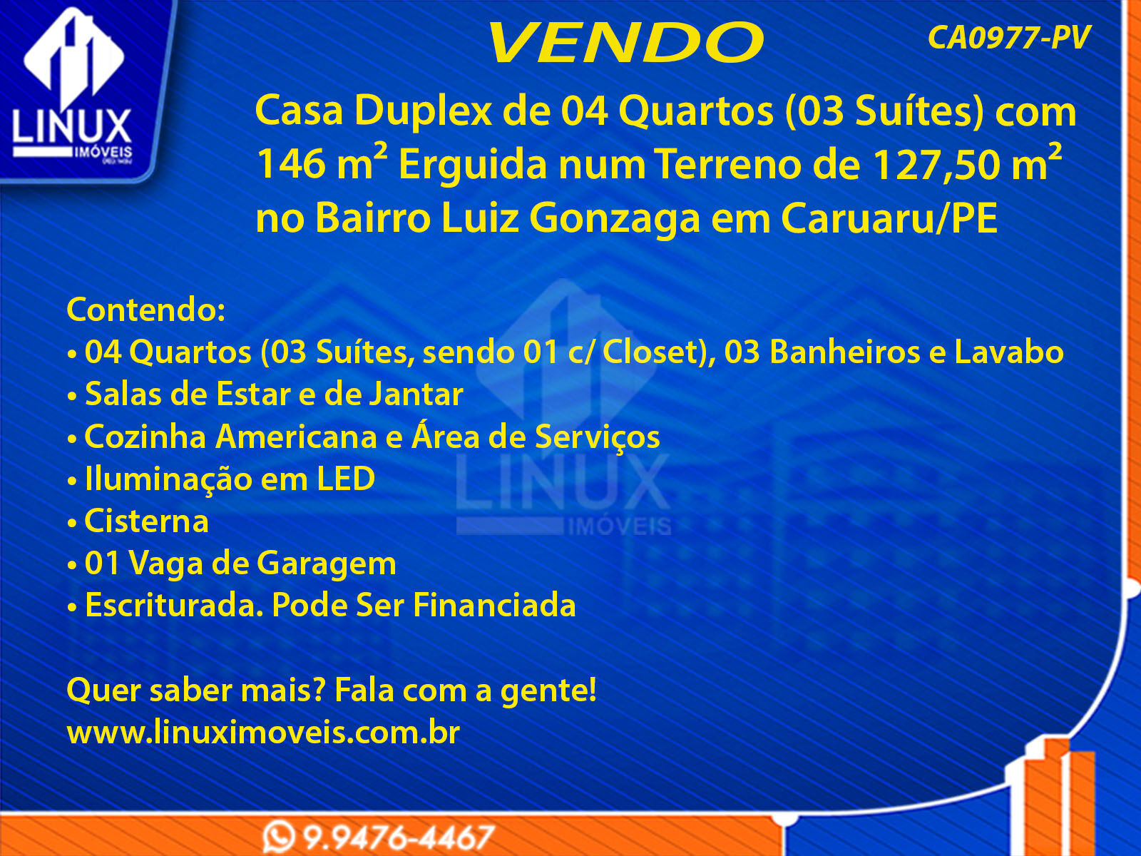 R$530.000,00 / VENDACasa Duplex no Bairro Luiz Gonzaga em Caruaru/PE à Venda (CA0977-PV)