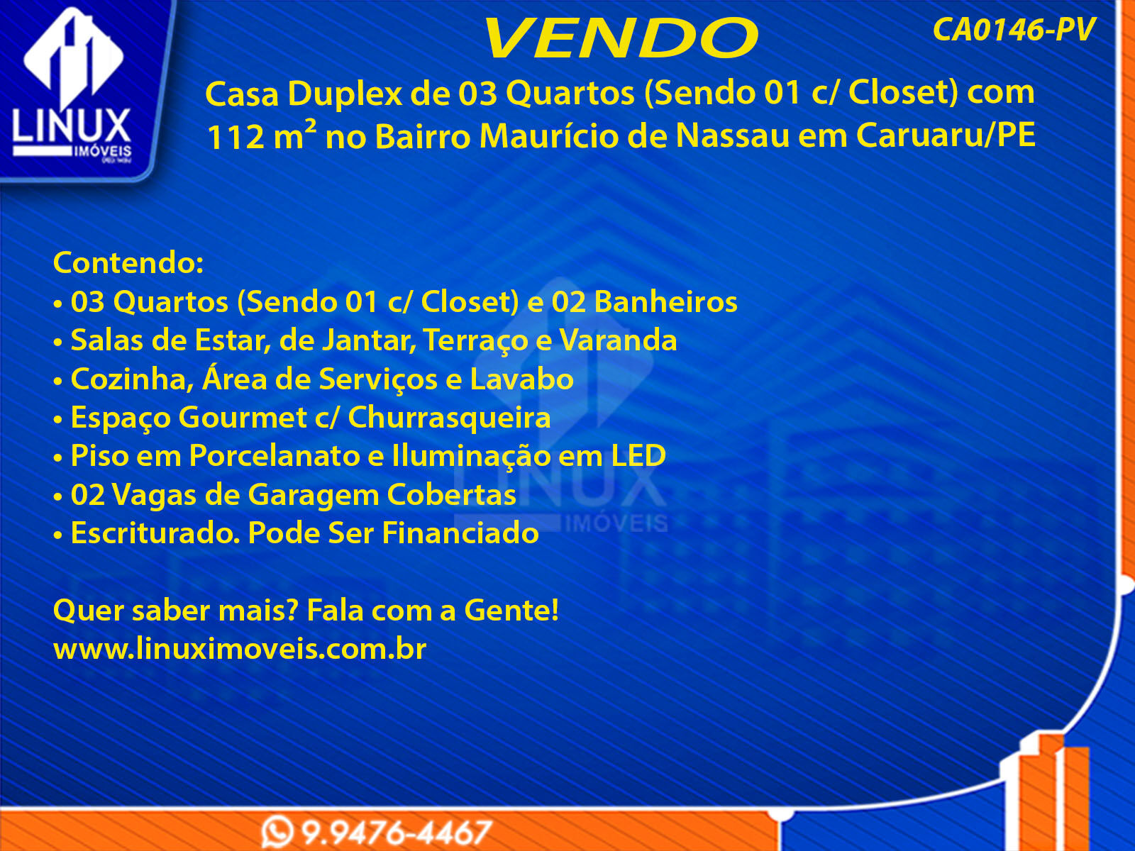 Casa Duplex de 03 Quartos (Sendo 01 c/ Closet) com 112 m² no Bairro Maurício de Nassau em Caruaru/PE