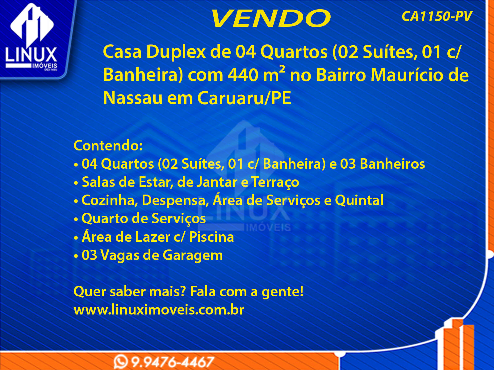 Casa Duplex no Bairro Maurício de Nassau em Caruaru/PE à Venda (CA1150-PV)