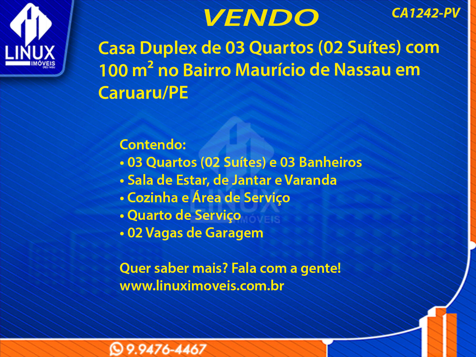 Casa Duplex no Bairro Maurício de Nassau em Caruaru/PE à Venda (CA1242-PV)