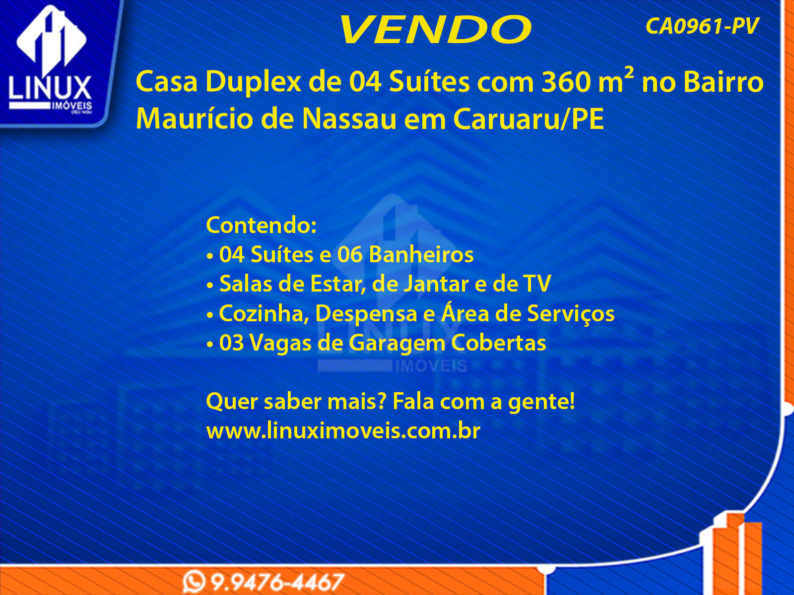Casa Duplex de 04 Suítes com 360 m² no Bairro Maurício de Nassau em Caruaru/PE