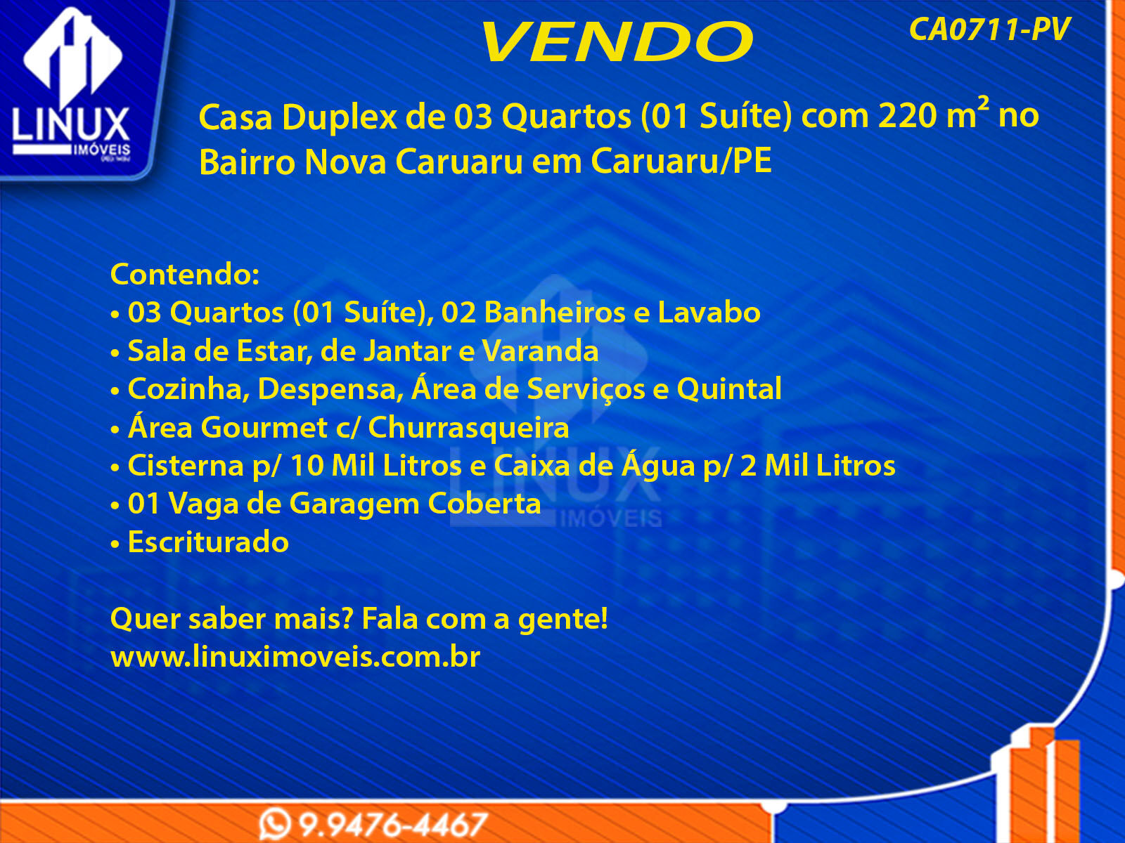 Casa Duplex no Bairro Nova Caruaru em Caruaru/PE à Venda (CA0711-PV)