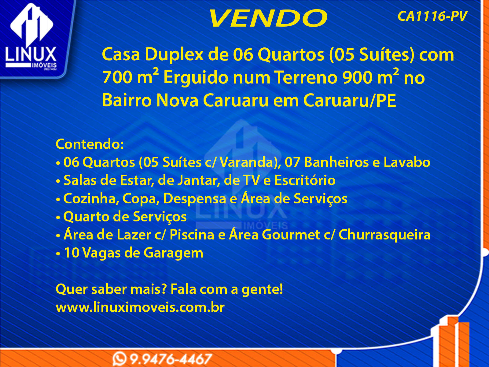 R$1.300.000,00 / VENDACasa Duplex no Bairro Nova Caruaru em Caruaru/PE à Venda (CA1116-PV)