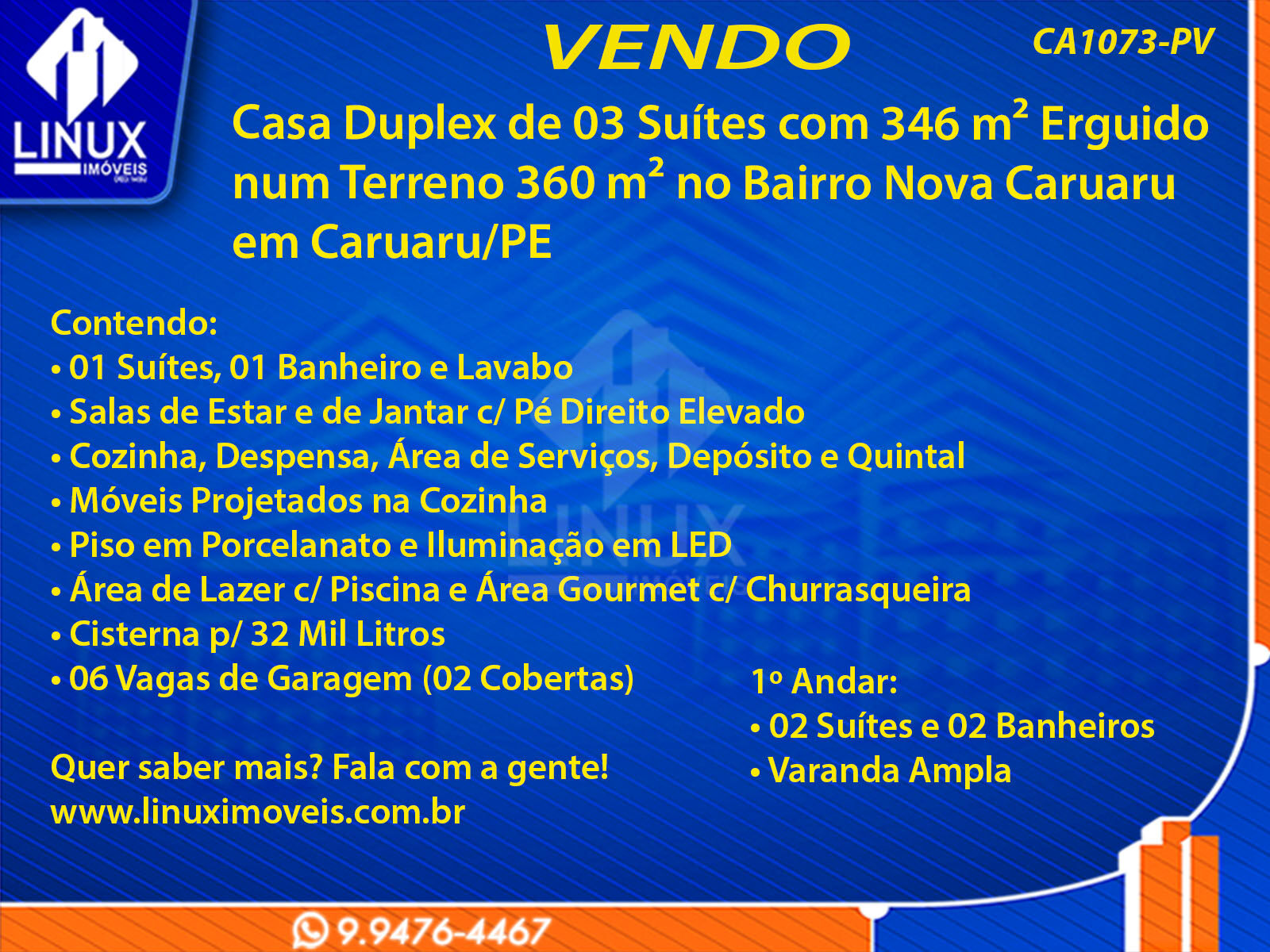 R$1.299.000,00 / VENDACasa Duplex no Bairro Nova Caruaru em Caruaru/PE à Venda (CA1073-PV)