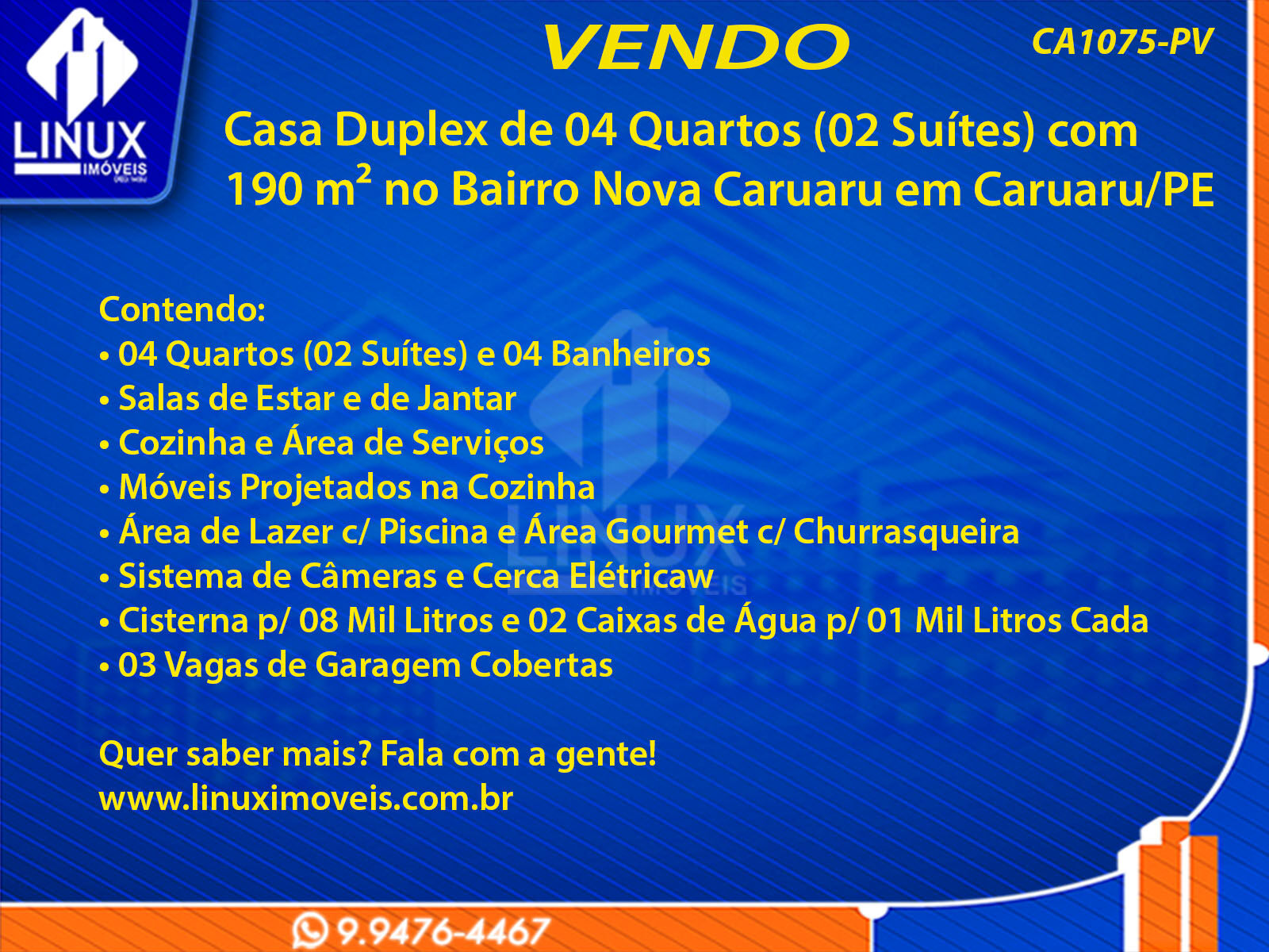 Casa Duplex no Bairro Nova Caruaru em Caruaru/PE à Venda (CA1075-PV)