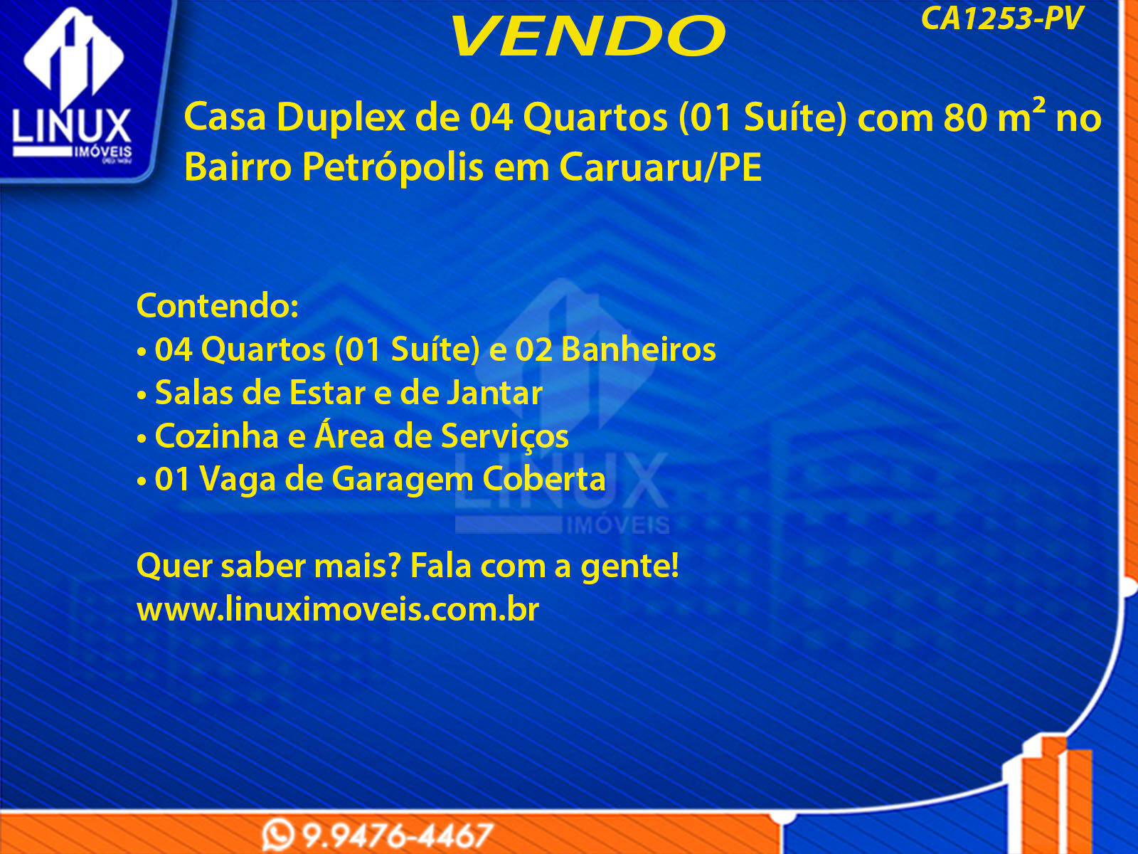 Casa Duplex de 04 Quartos ( 01 Suíte) com 80 m² no Bairro Petrópolis em Caruaru/PE