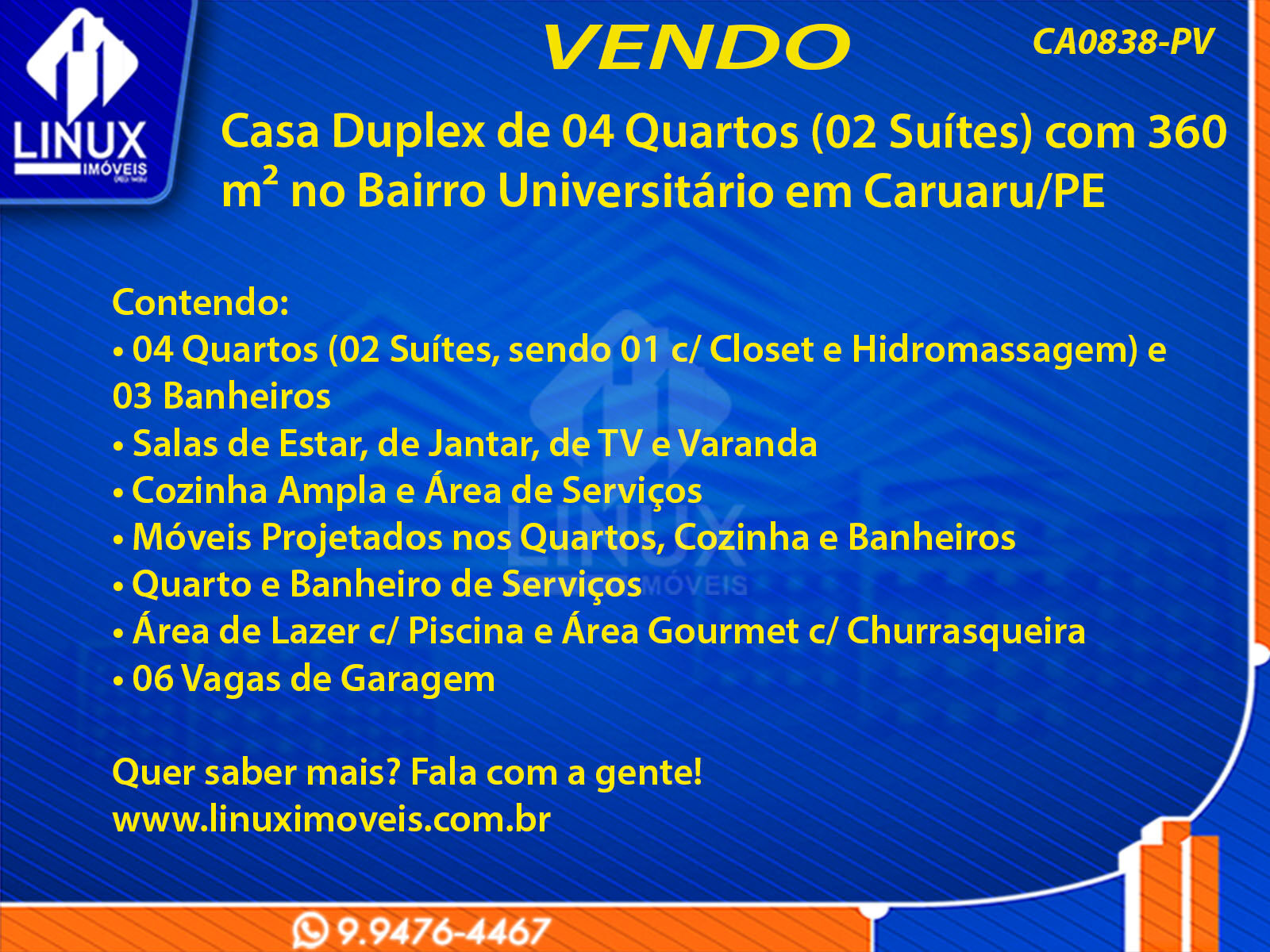 Casa Duplex de 04 Quartos (02 Suítes) com 360 m² no Bairro Universitário em Caruaru/PE