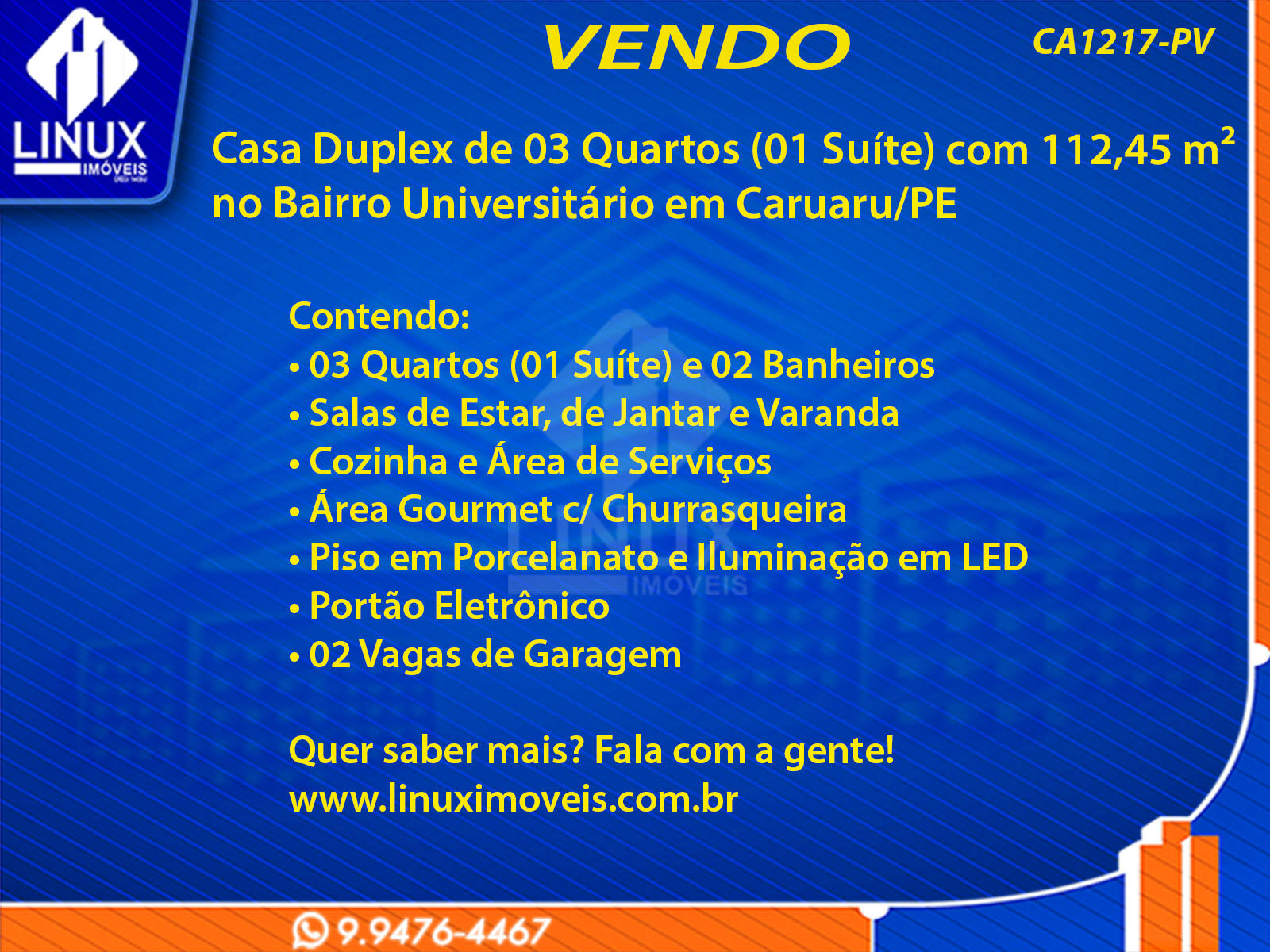 Casa Duplex no Bairro Universitário em Caruaru/PE à Venda (CA1217-PV)
