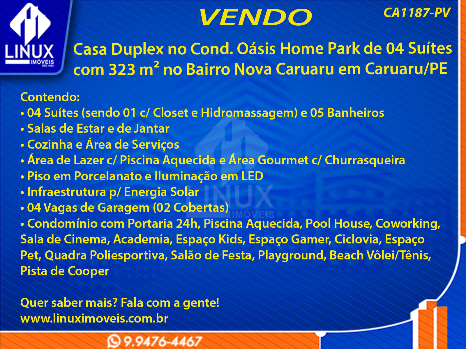 R$1.800.000,00 / VENDACasa Duplex no Cond. Oásis Home Park em Caruaru/PE à Venda (CA1187-PV)