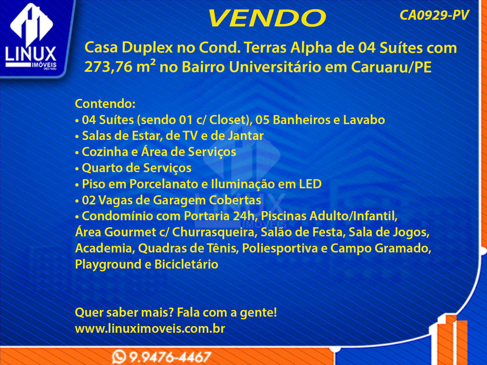 Casa Duplex no Cond. Terras Alpha em Caruaru/PE à Venda (CA0929-PV)