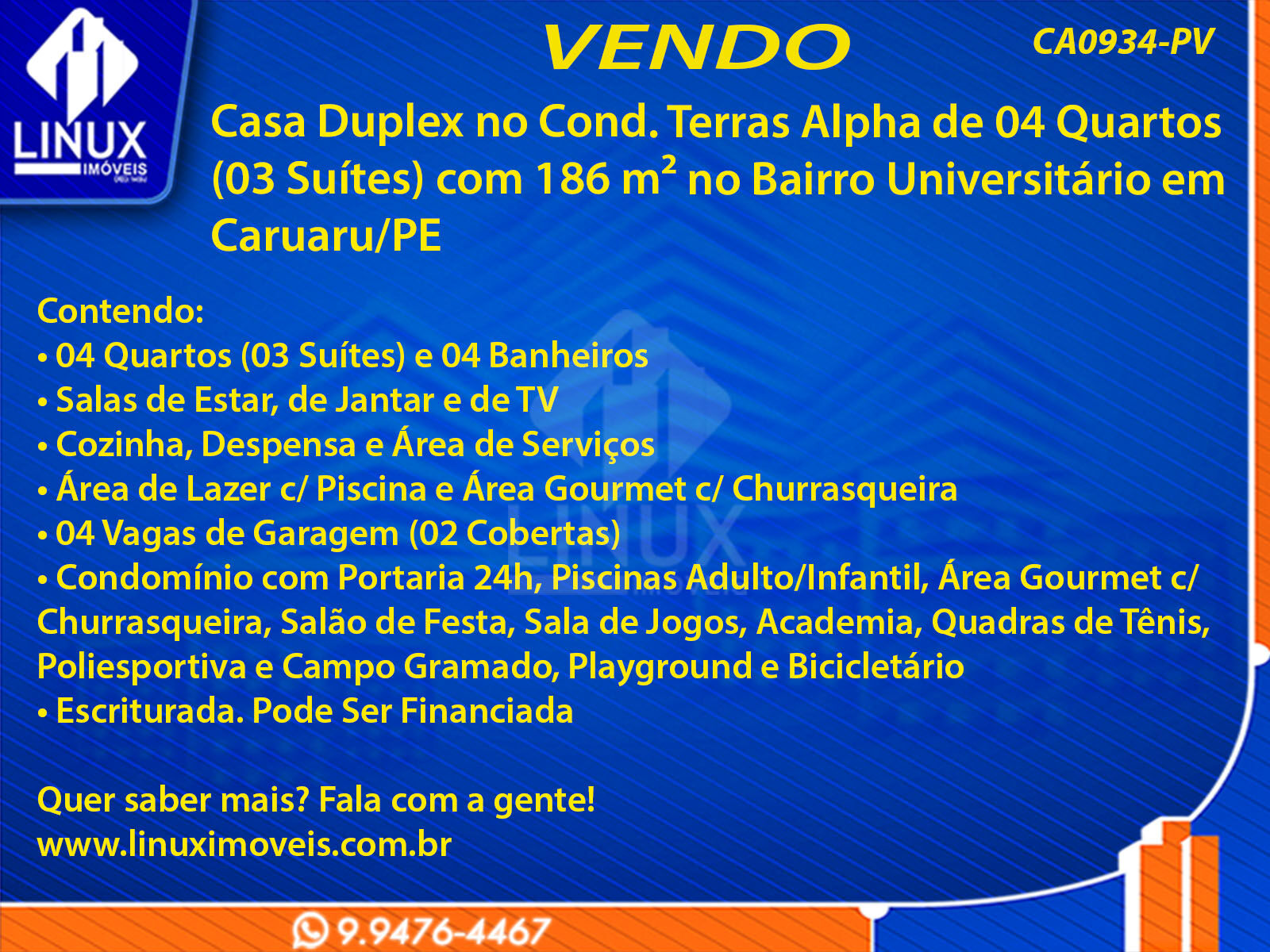 Casa Duplex no Cond. Terras Alpha em Caruaru/PE à Venda (CA0934-PV)