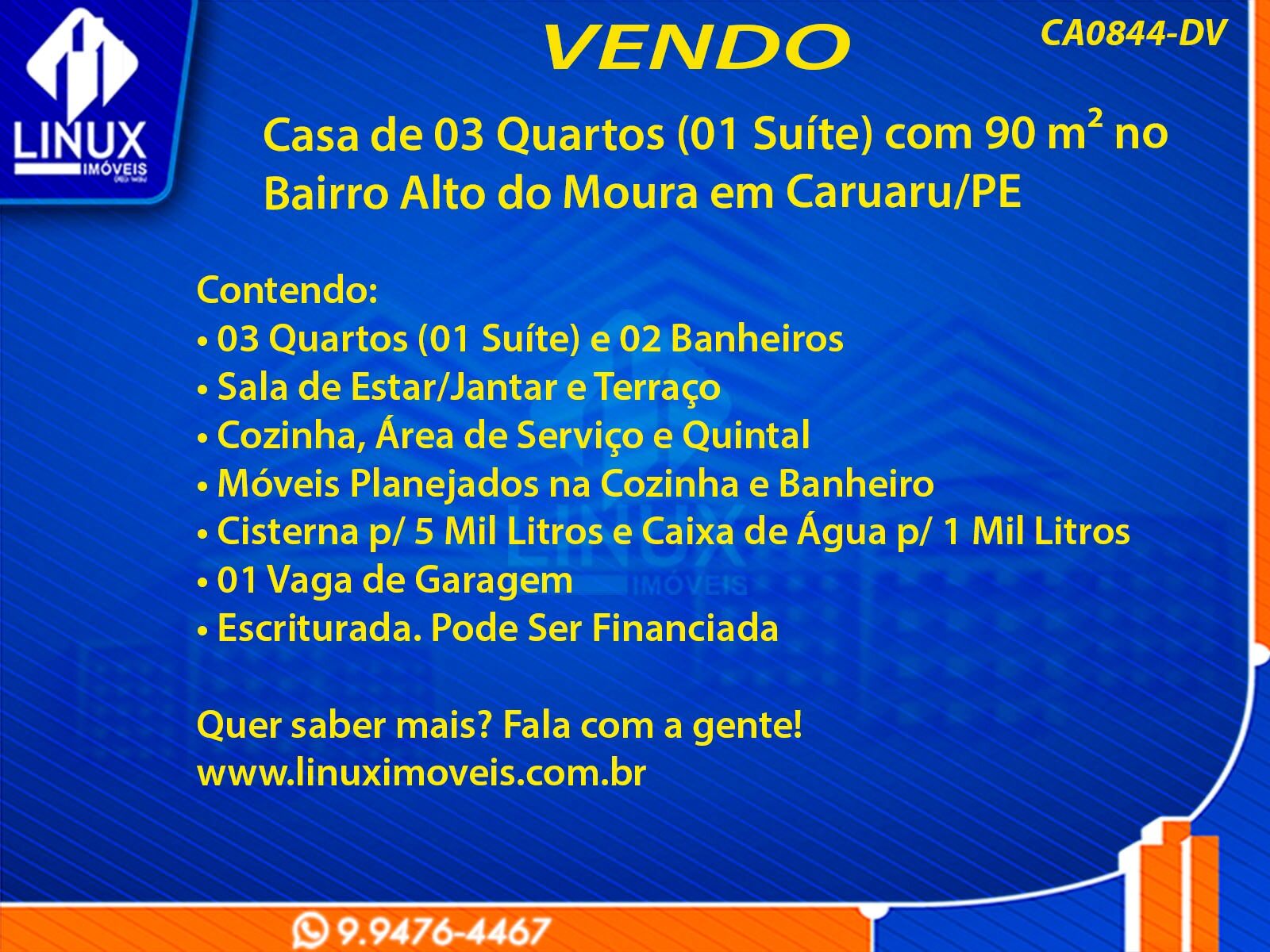 Casa no Bairro Alto do Moura em Caruaru/PE à Venda (CA0844-DV)