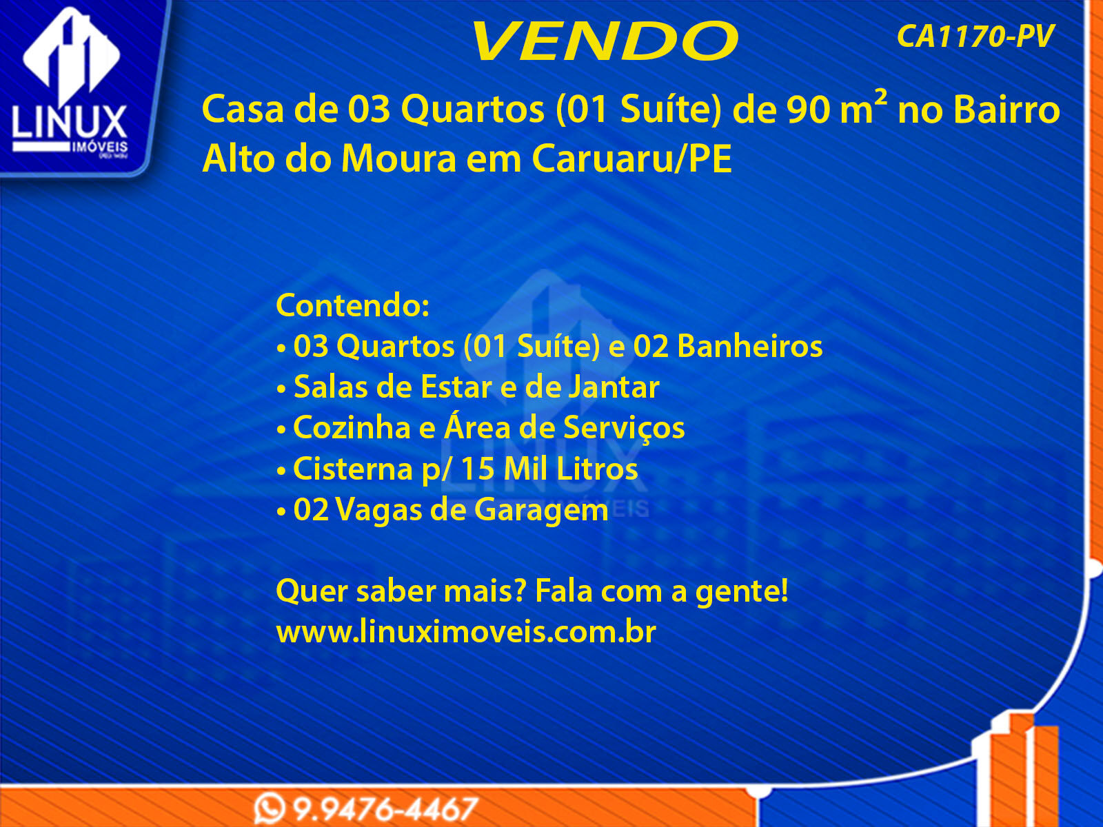 R$195.000,00 / VENDACasa no Bairro Alto do Moura em Caruaru/PE à Venda (CA1170-PV)
