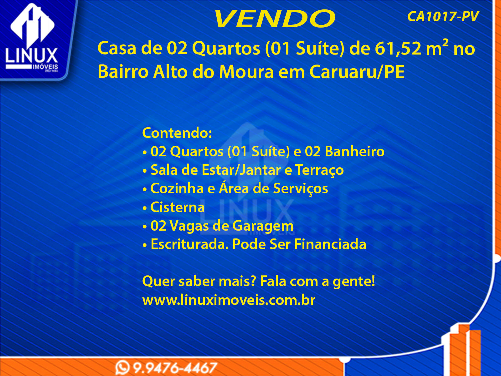 Casa de 02 Quartos (01 Suíte) de 61,52 m² no Bairro Alto do Moura em Caruaru/PE