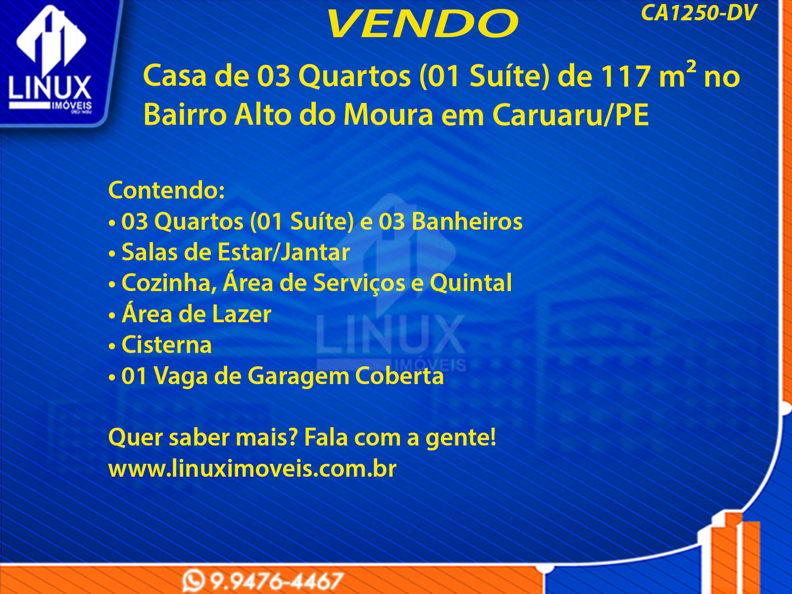 R$330.000,00 / VENDACasa no Bairro Alto do Moura em Caruaru/PE à Venda (CA1250-DV)