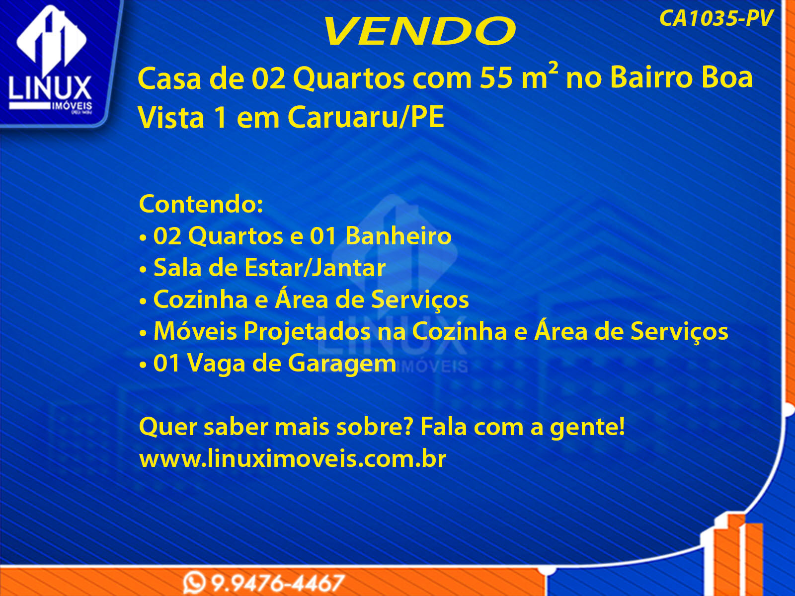 Casa de 02 Quartos com 55 m² no Bairro Boa Vista 1 em Caruaru/PE