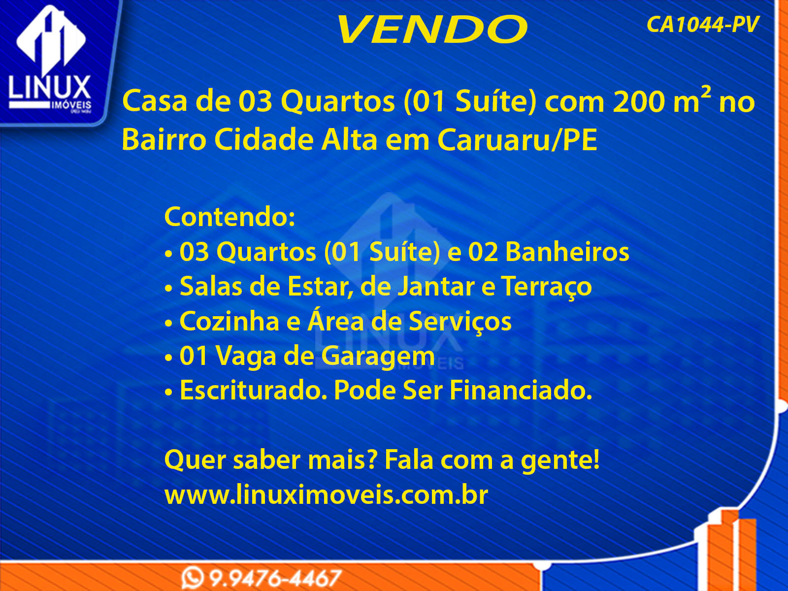 Casa de 03 Quartos (01 Suíte) com 200 m² no Bairro Cidade Alta em Caruaru/PE