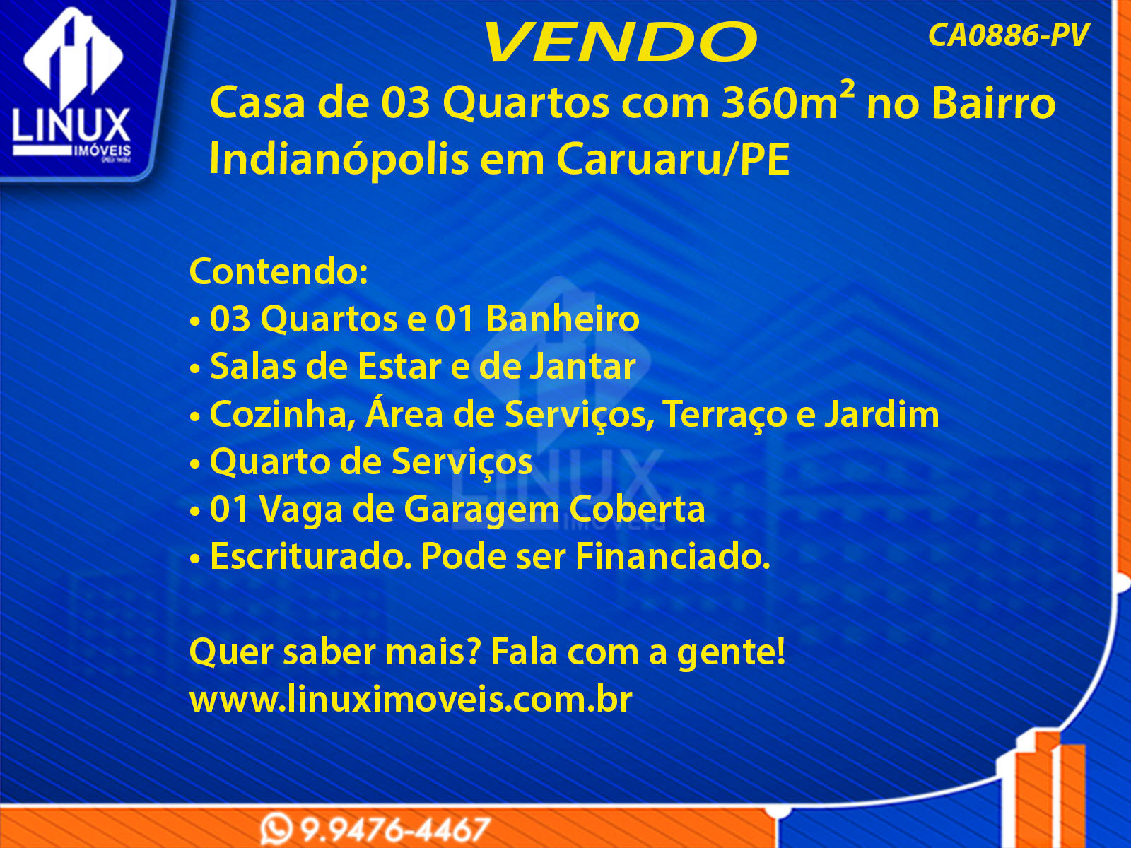 Casa de 03 Quartos com 360 m² no Bairro Indianópolis em Caruaru/PE