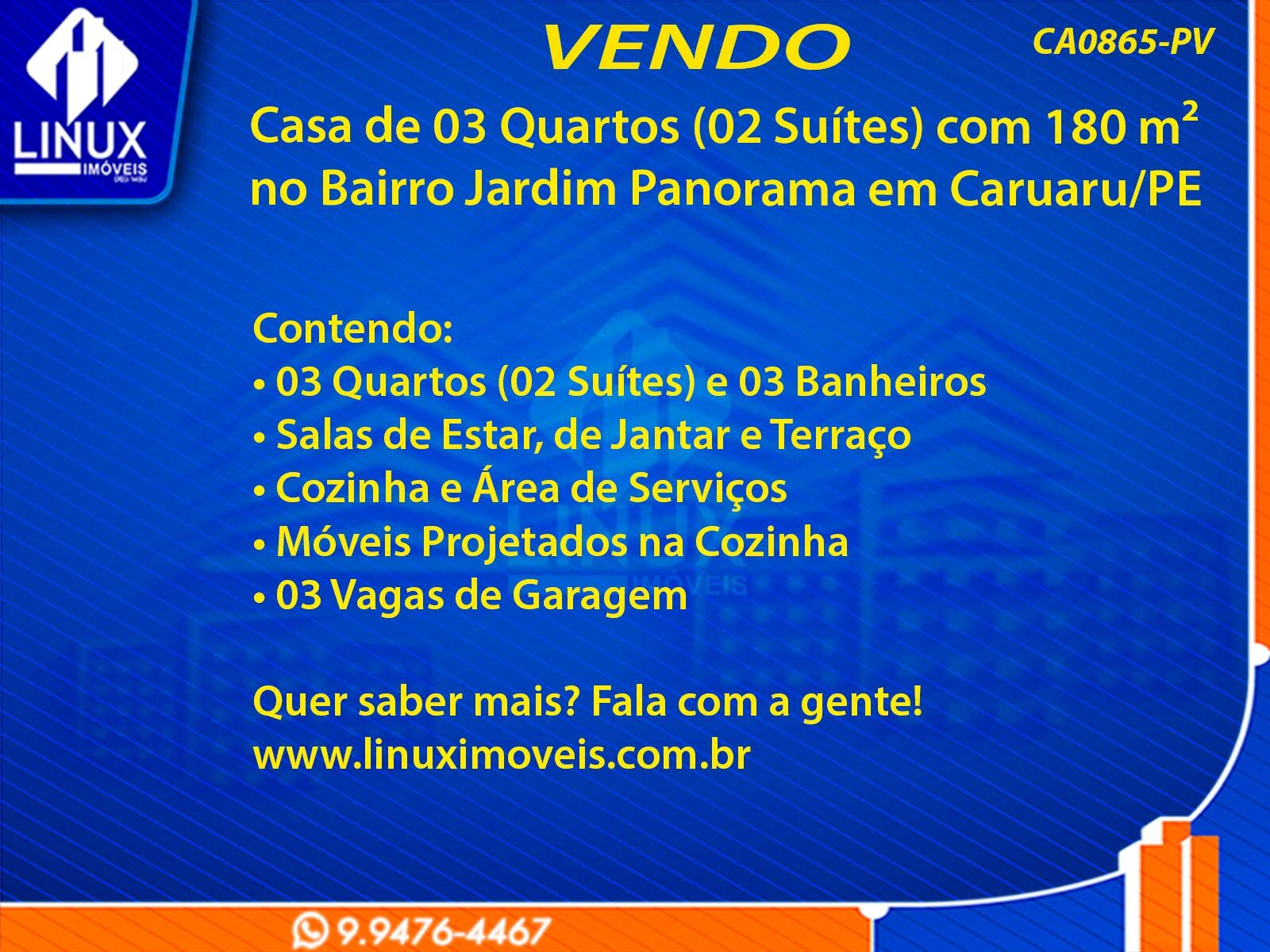 Casa de 03 Quartos (02 Suítes) com 180 m² no Bairro Jardim Panorama em Caruaru/PE