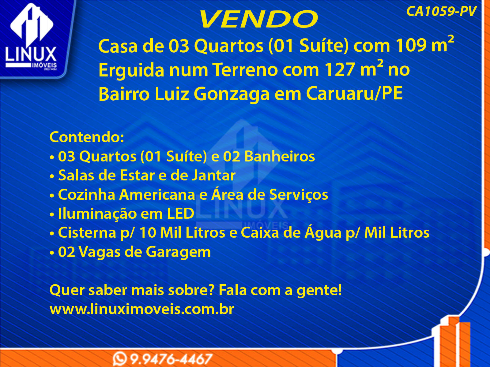 Casa no Bairro Luiz Gonzaga em Caruaru/PE à Venda (CA1059-PV)