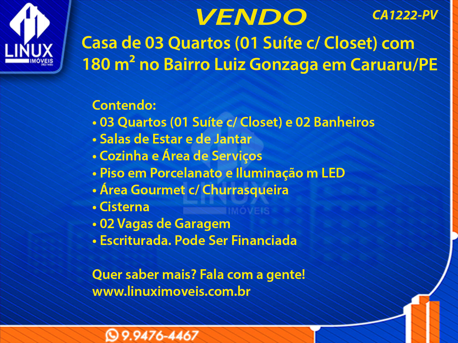 Casa de 03 Quartos (01 Suíte c/ Closet) com 180 m² no Bairro Luiz Gonzaga em Caruaru/PE