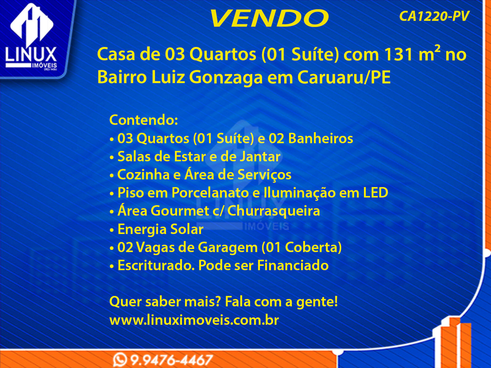 Casa de 03 Quartos (01 Suíte) com 131 m² no Bairro Luiz Gonzaga em Caruaru/PE
