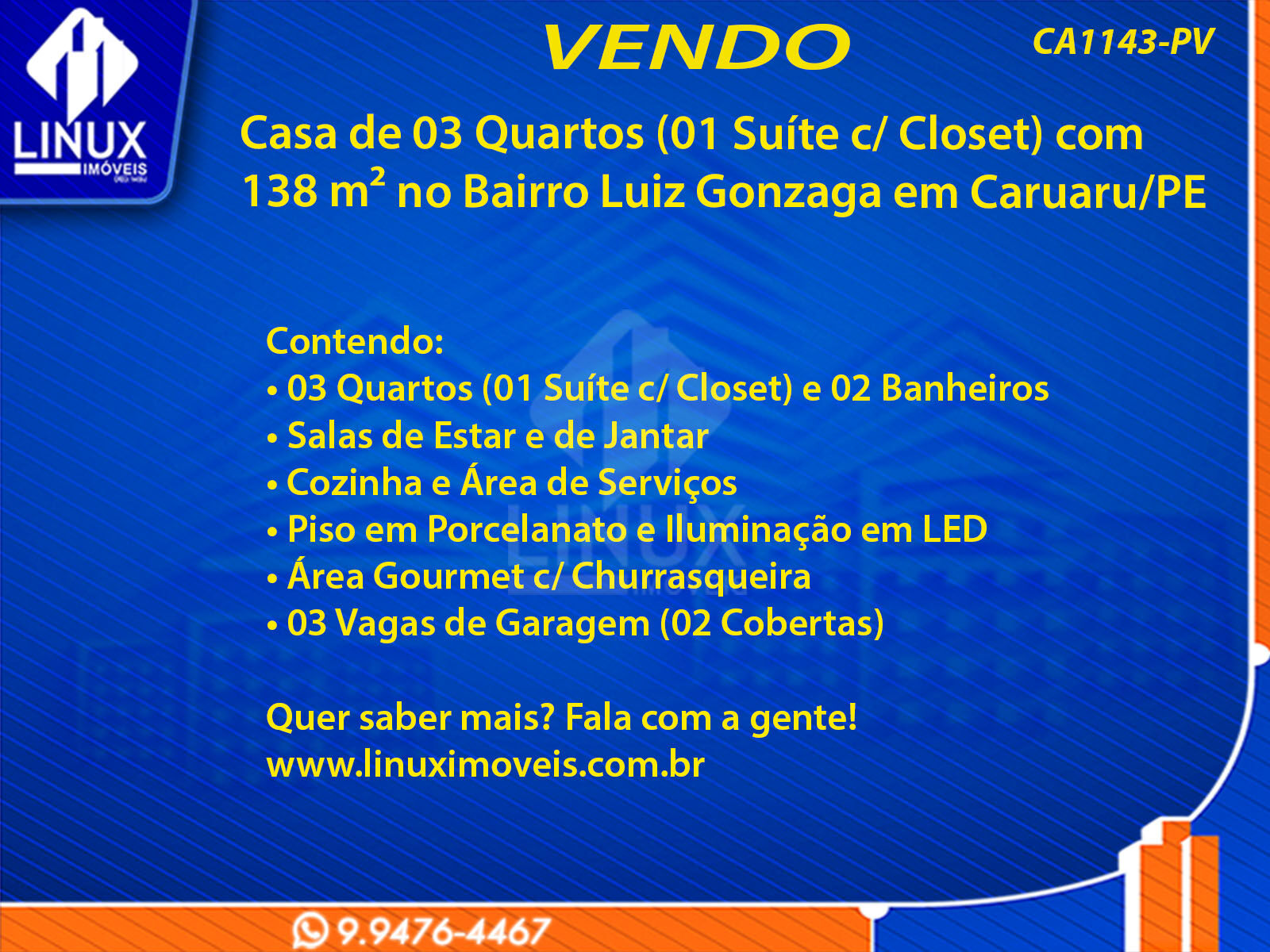 Casa de 03 Quartos (01 Suíte c/ Closet) com 138 m² no Bairro Luiz Gonzaga em Caruaru/PE