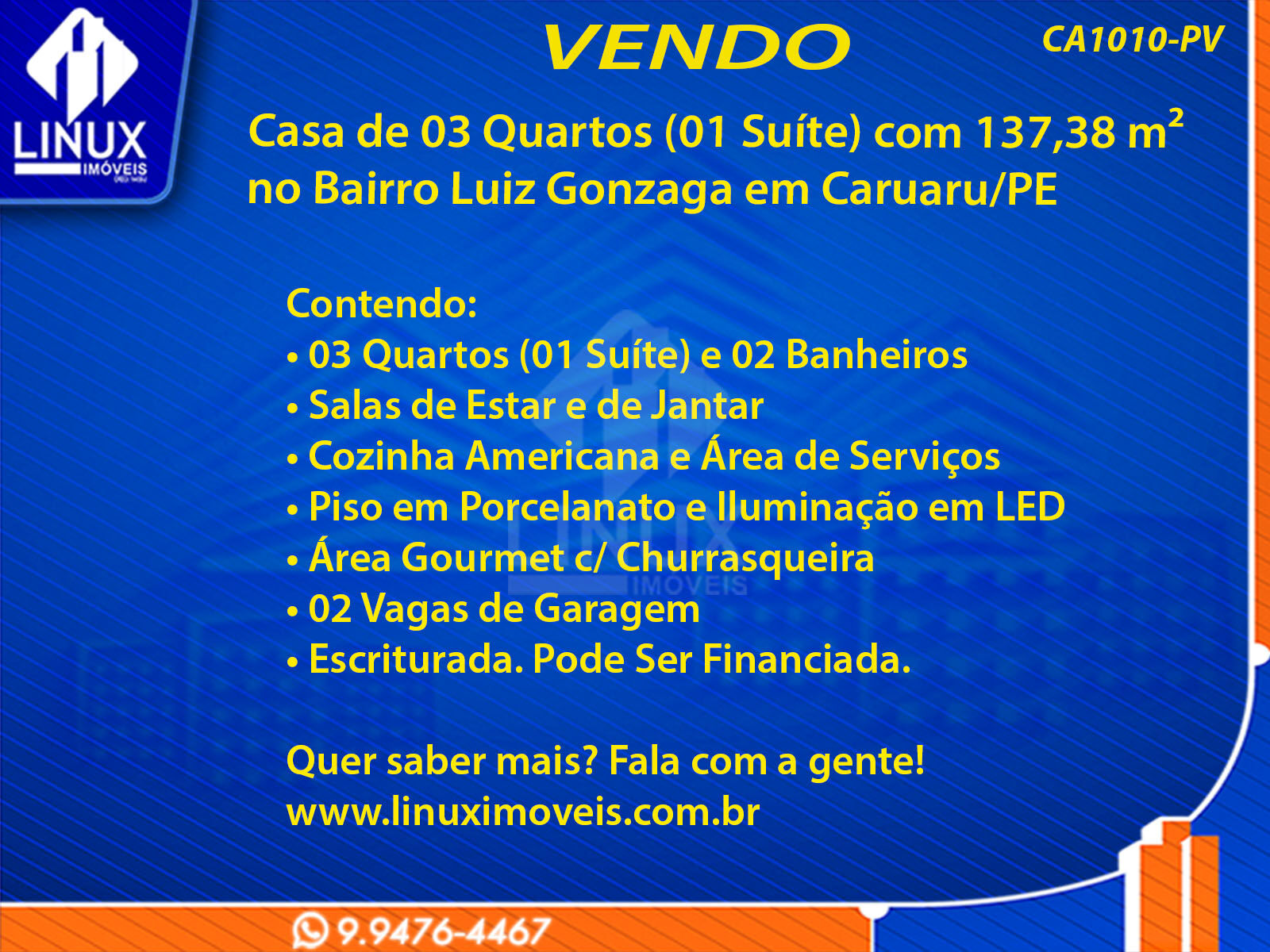 Casa no Bairro Luiz Gonzaga em Caruaru/PE à Venda (CA1010-PV)