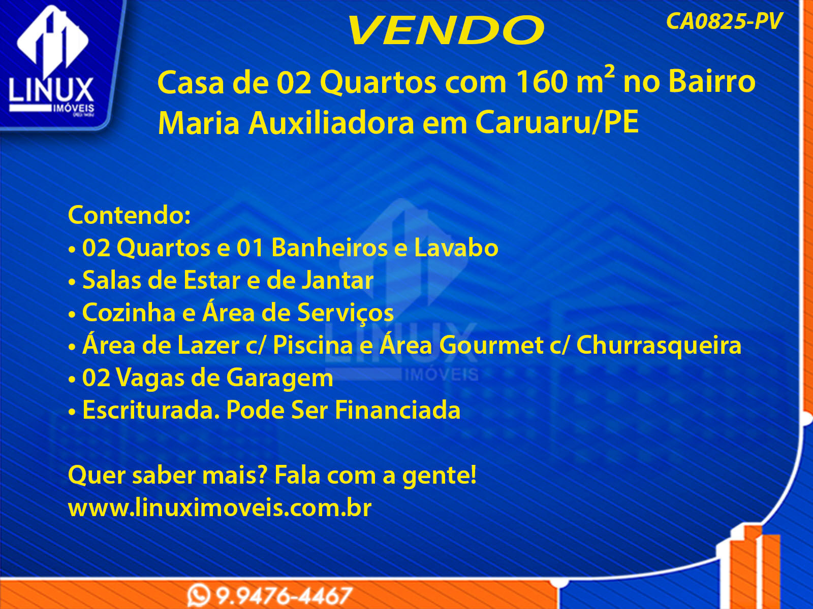 Casa de 02 Quartos com 160 m² no Bairro Maria Auxiliadora em Caruaru/PE