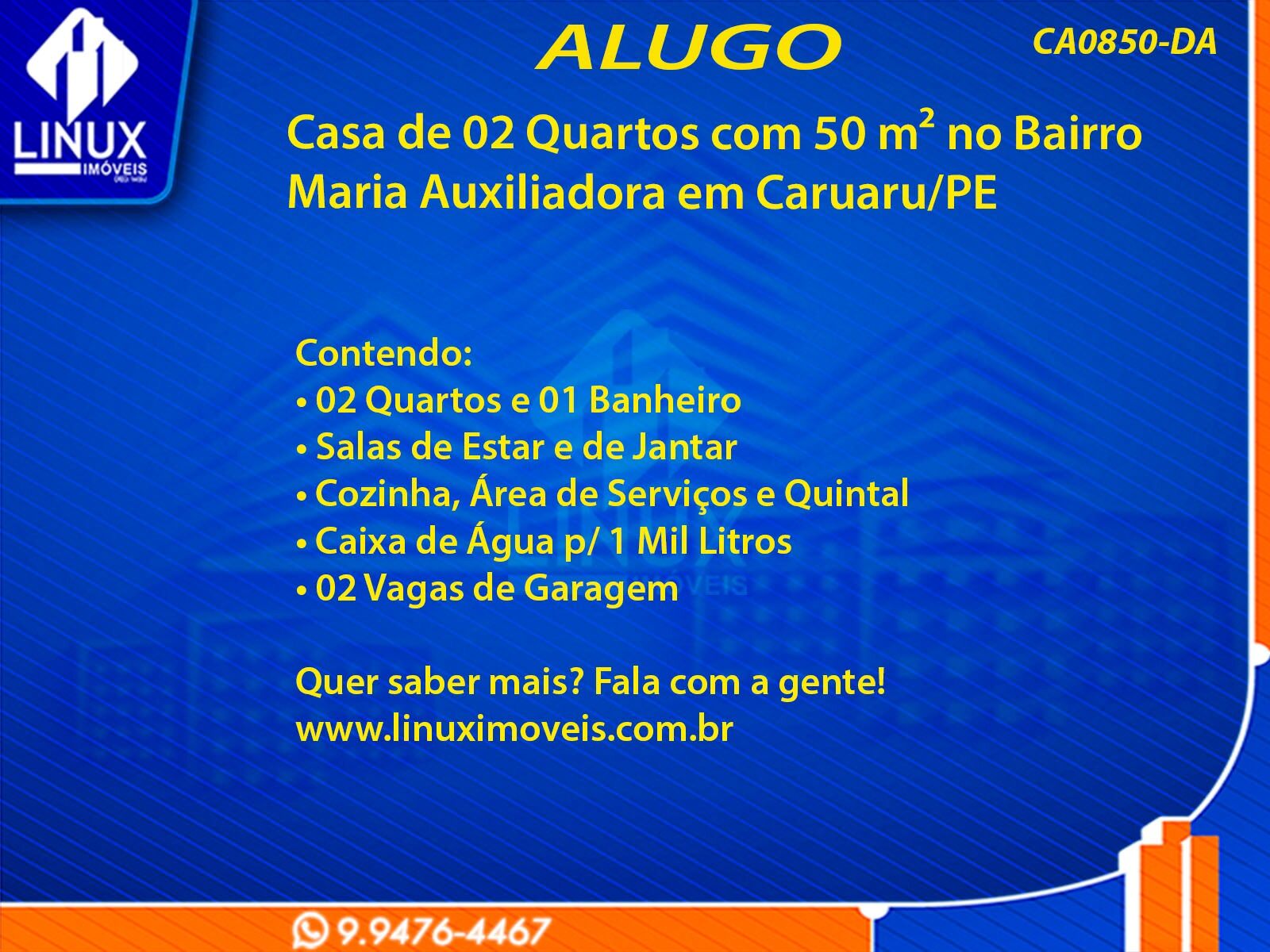 R$800,00 / ALUGUELCasa no Bairro Maria Auxiliadora em Caruaru/PE p/ Locação (CA0850-DA)