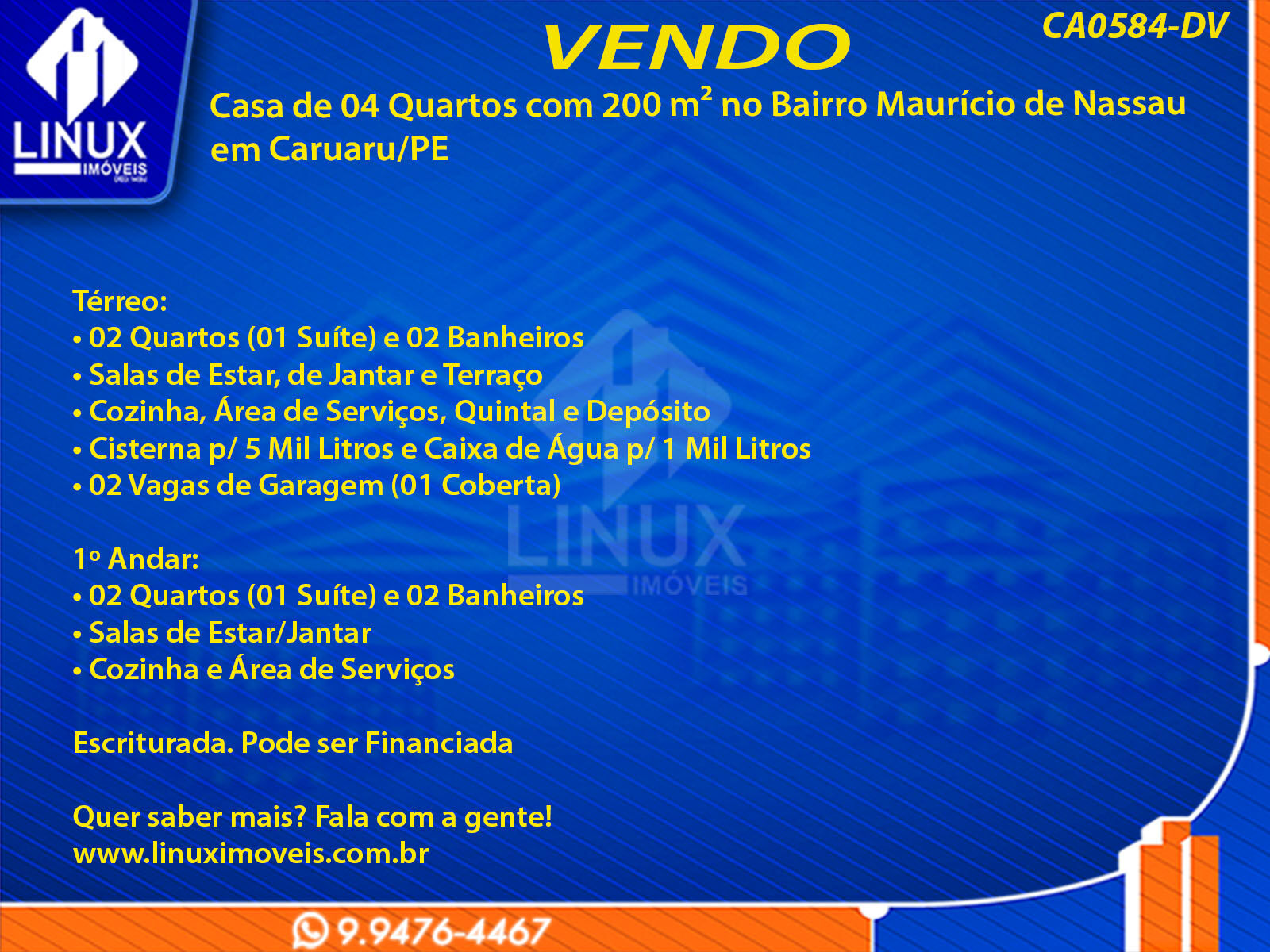 Casa de 04 Quartos com 200 m² no Bairro Maurício de Nassau em Caruaru/PE