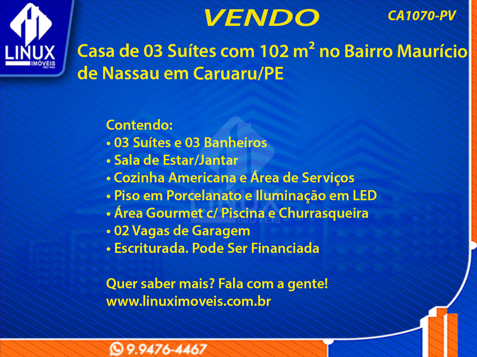Casa de 03 Suítes com 102 m² no Bairro Maurício de Nassau em Caruaru/PE