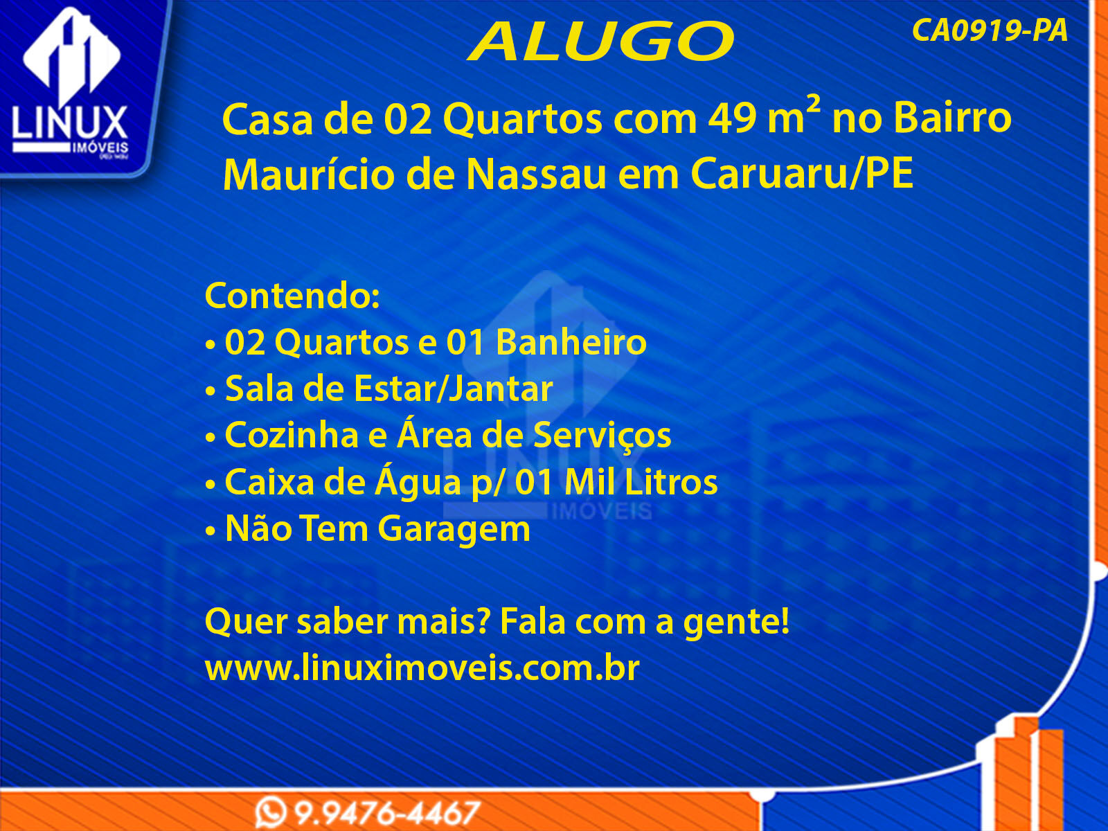 Casa no Bairro Maurício de Nassau em Caruaru/PE p/ Locação (CA0919-PA)