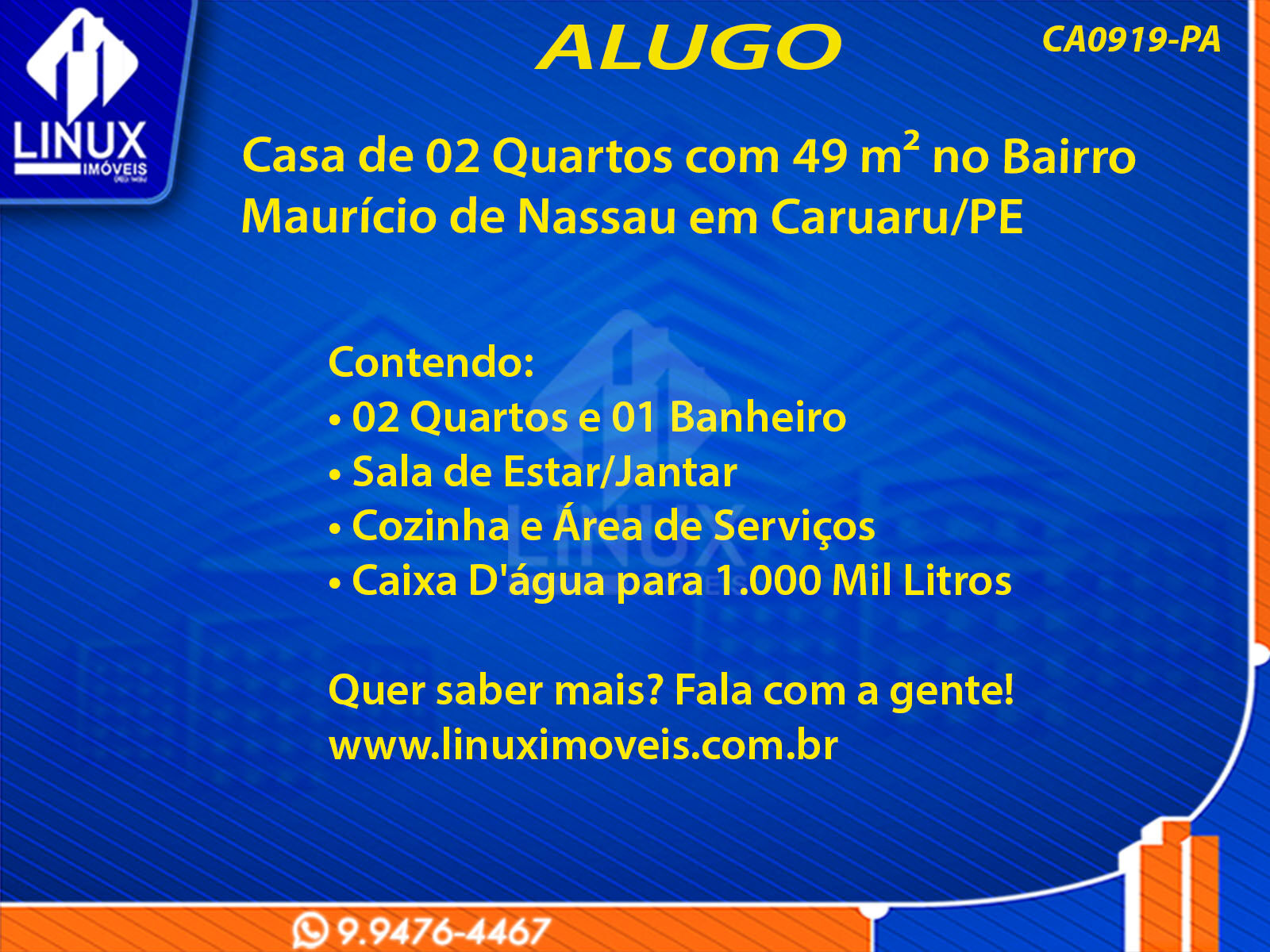R$2.000,00 / ALUGUELCasa no Bairro Maurício de Nassau em Caruaru/PE p/ Locação (CA0919-PA)
