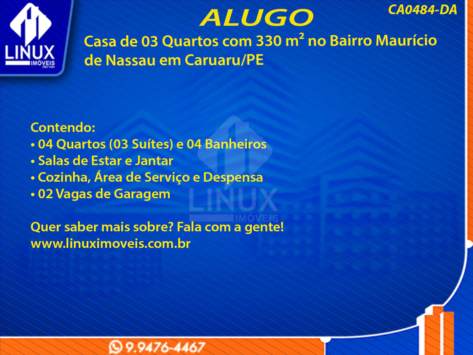 R$15.000,00 / ALUGUELCasa no Bairro Maurício de Nassau em Caruaru/PE p/Locação (CA0484-DA)