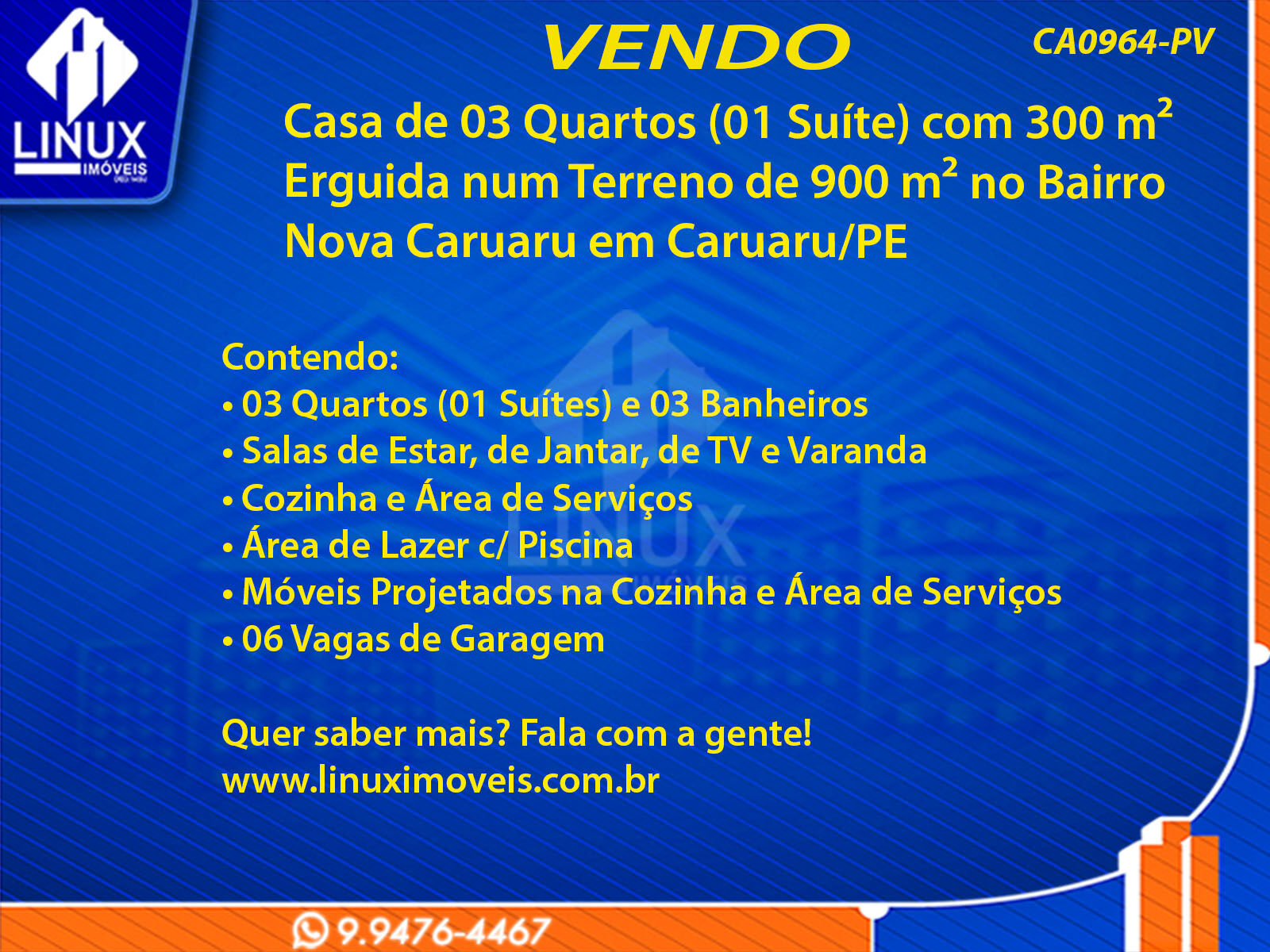 Casa no Bairro Nova Caruaru em Caruaru/PE à Venda (CA0964-PV)