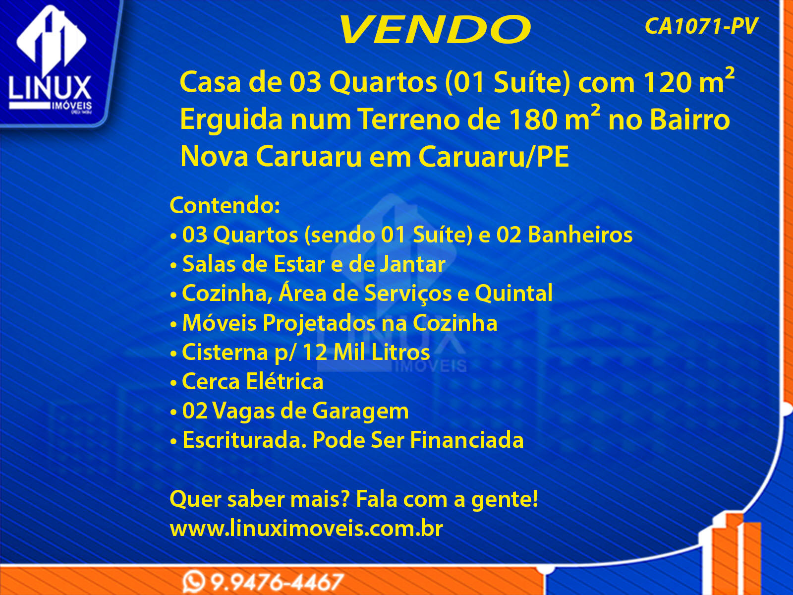Casa no Bairro Nova Caruaru em Caruaru/PE à Venda (CA1071-PV)