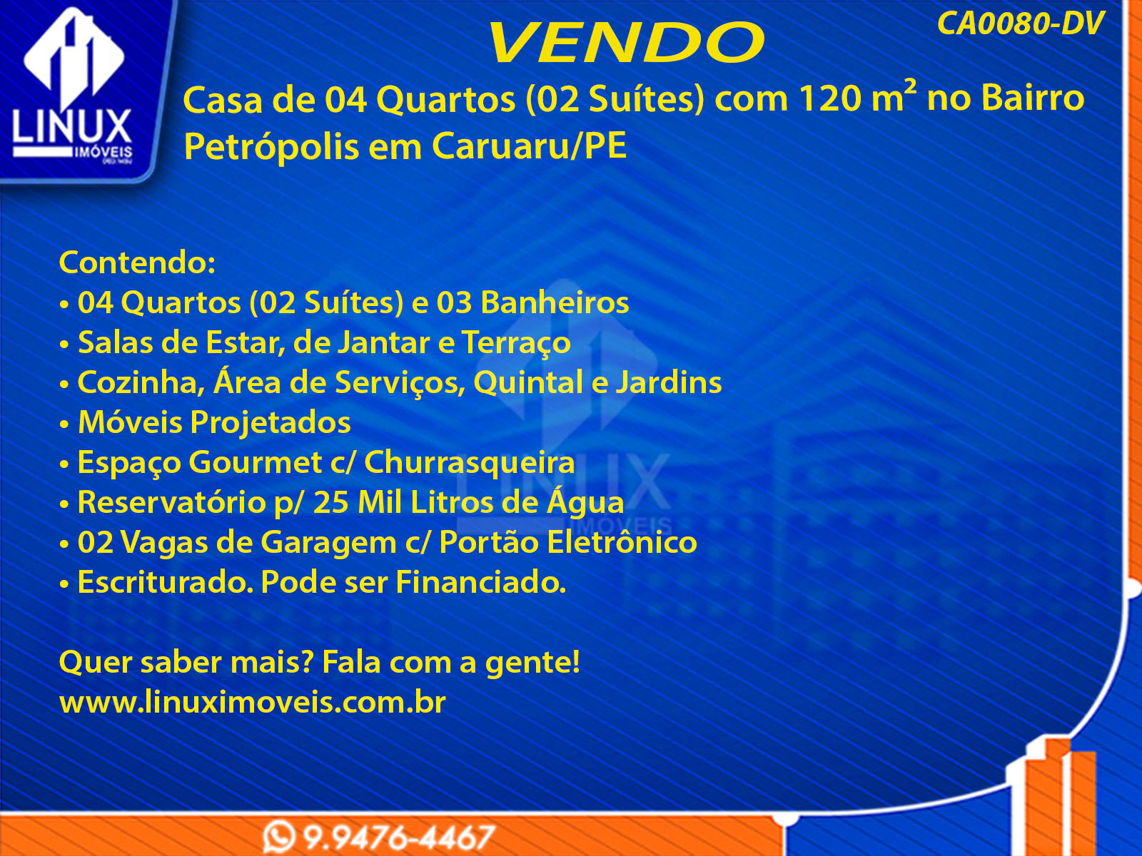 Casa de 04 Quartos (02 Suítes) com 120 m² no Bairro Petrópolis em Caruaru/PE