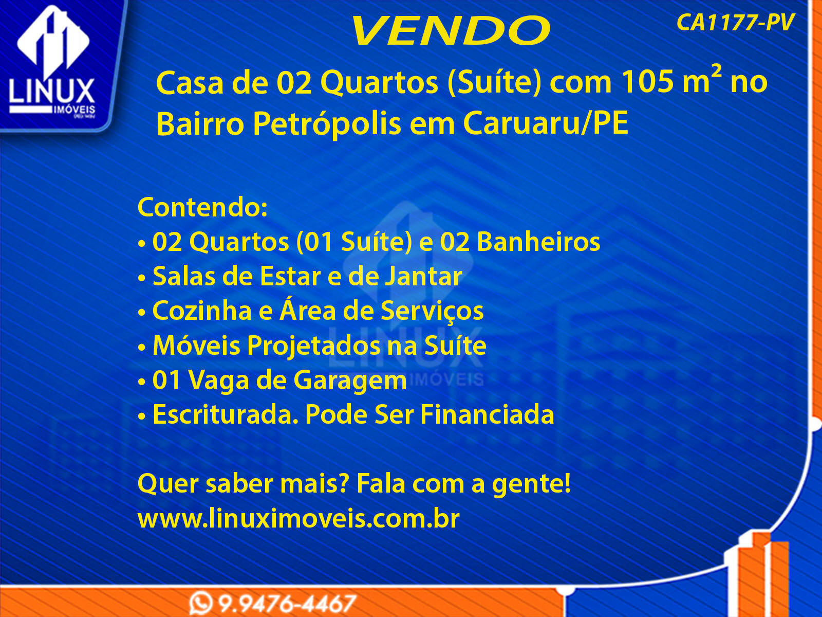 Casa de 02 Quartos (Suíte) com 105 m² no Bairro Petrópolis em Caruaru/PE