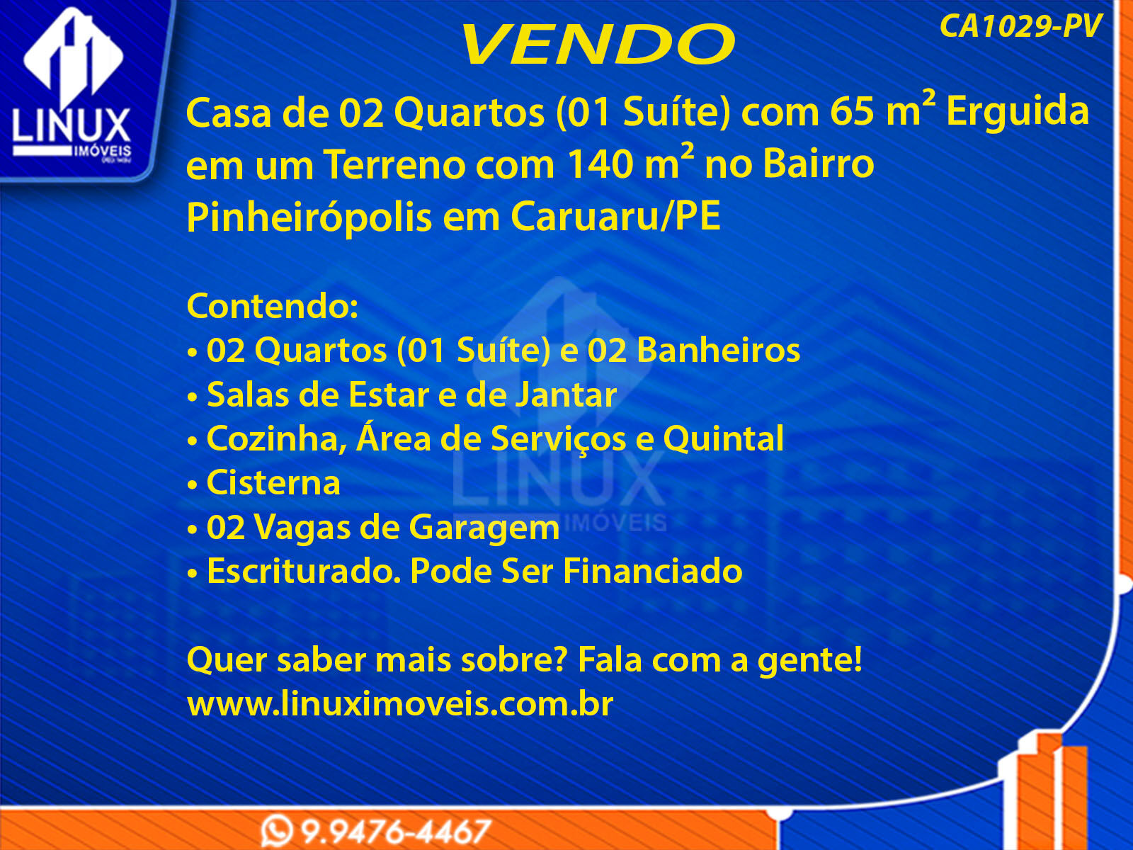 R$320.000,00 / VENDACasa no Bairro Pinheirópolis em Caruaru/PE à Venda (CA1029-PV)