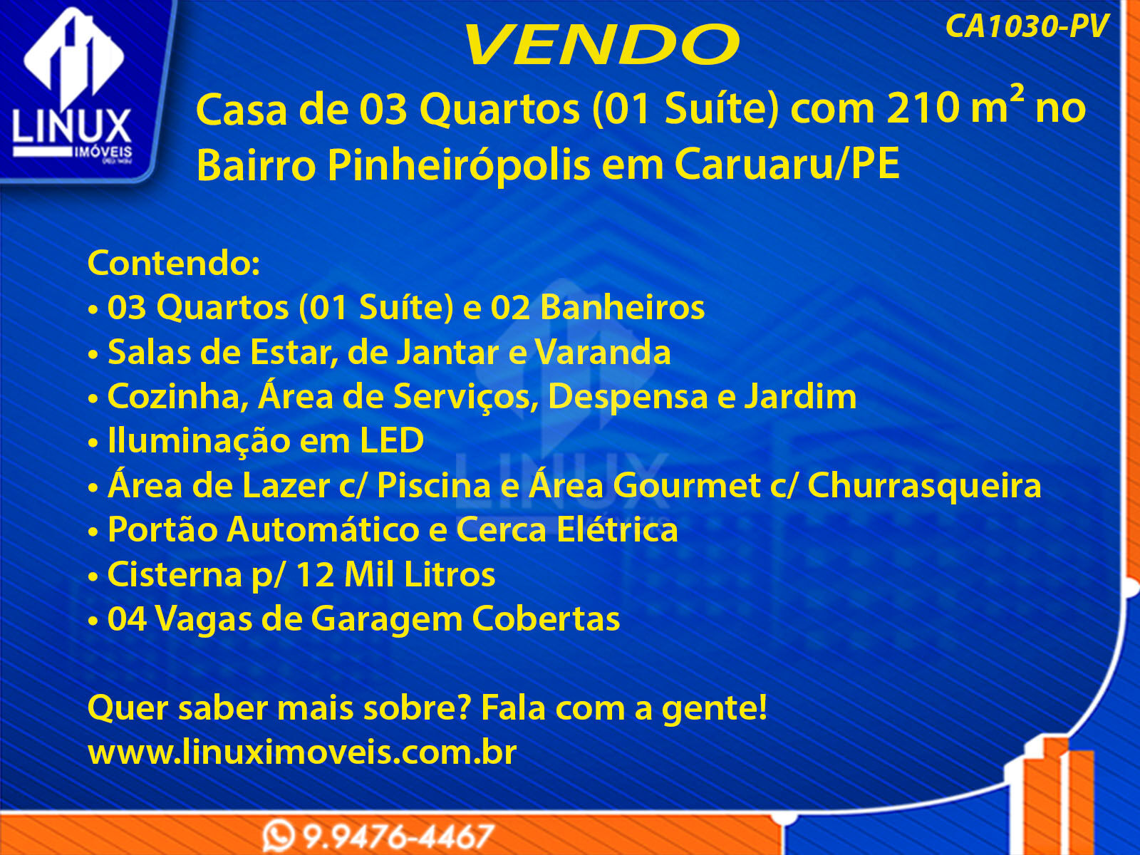 R$350.000,00 / VENDACasa no Bairro Pinheirópolis em Caruaru/PE à Venda (CA1030-PV)