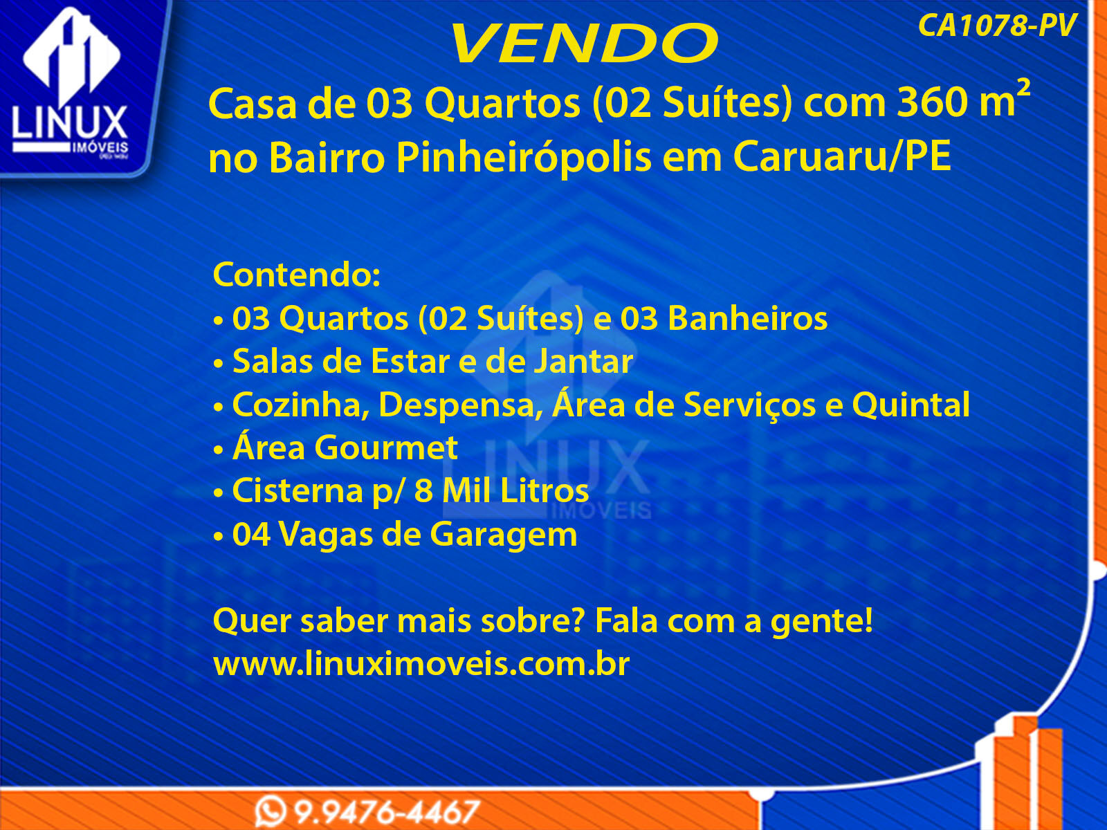 R$850.000,00 / VENDACasa no Bairro Pinheirópolis em Caruaru/PE à Venda (CA1078-PV)