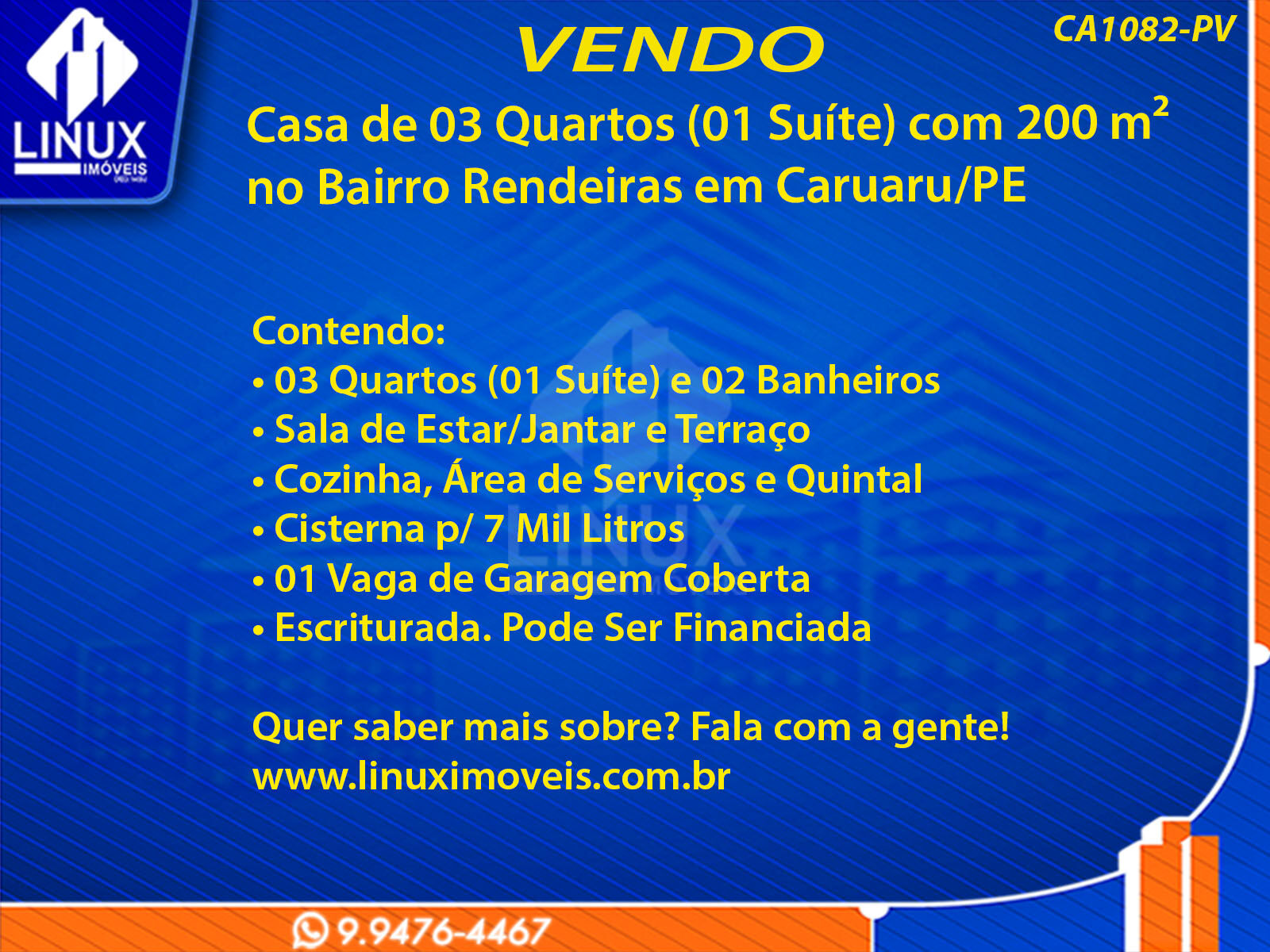 Casa no Bairro Rendeiras em Caruaru/PE à Venda (CA1082-PV)