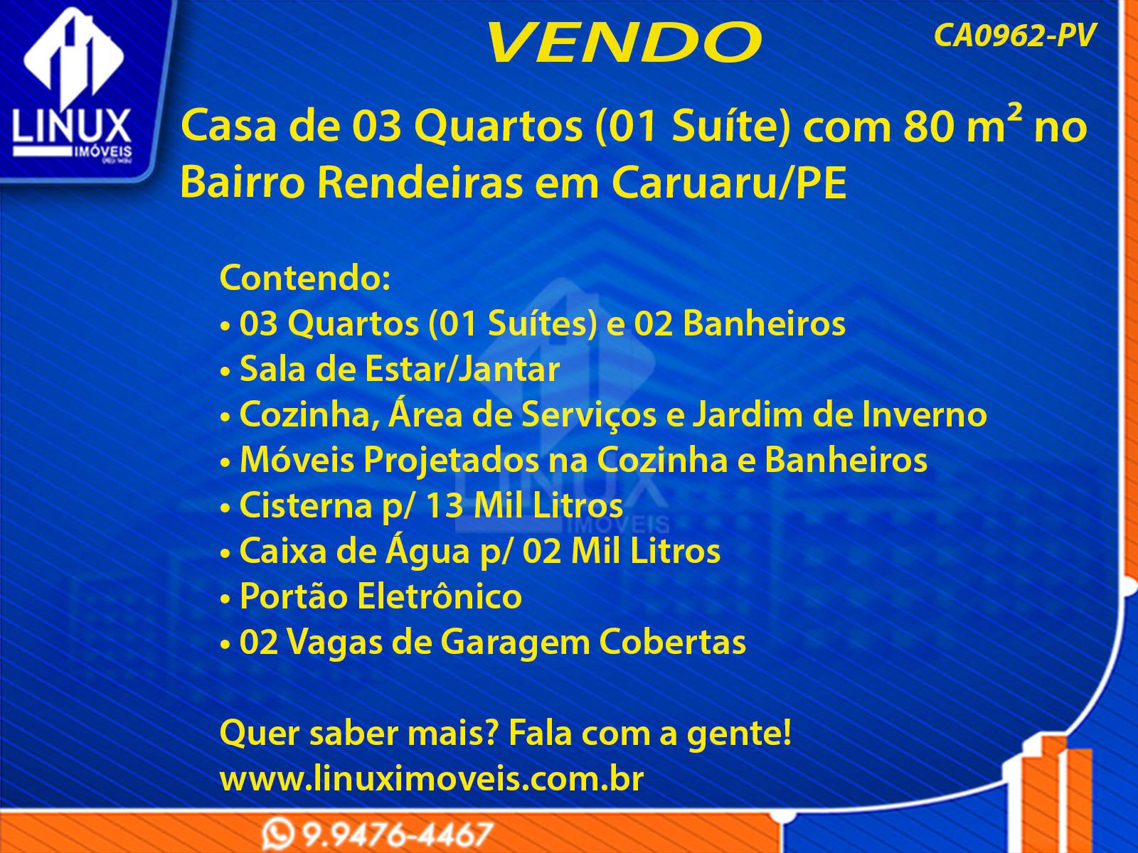 Casa de 03 Quartos (01 Suíte) com 80 m² no Bairro Rendeiras em Caruaru/PE