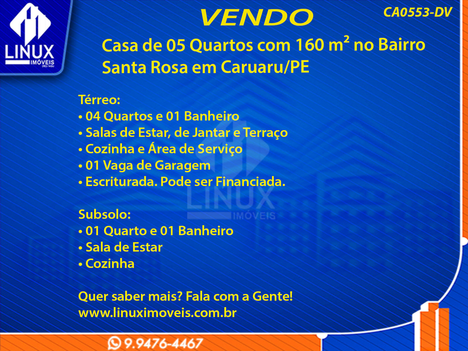 Casa de 05 Quartos com 160 m² no Bairro Santa Rosa em Caruaru/PE
