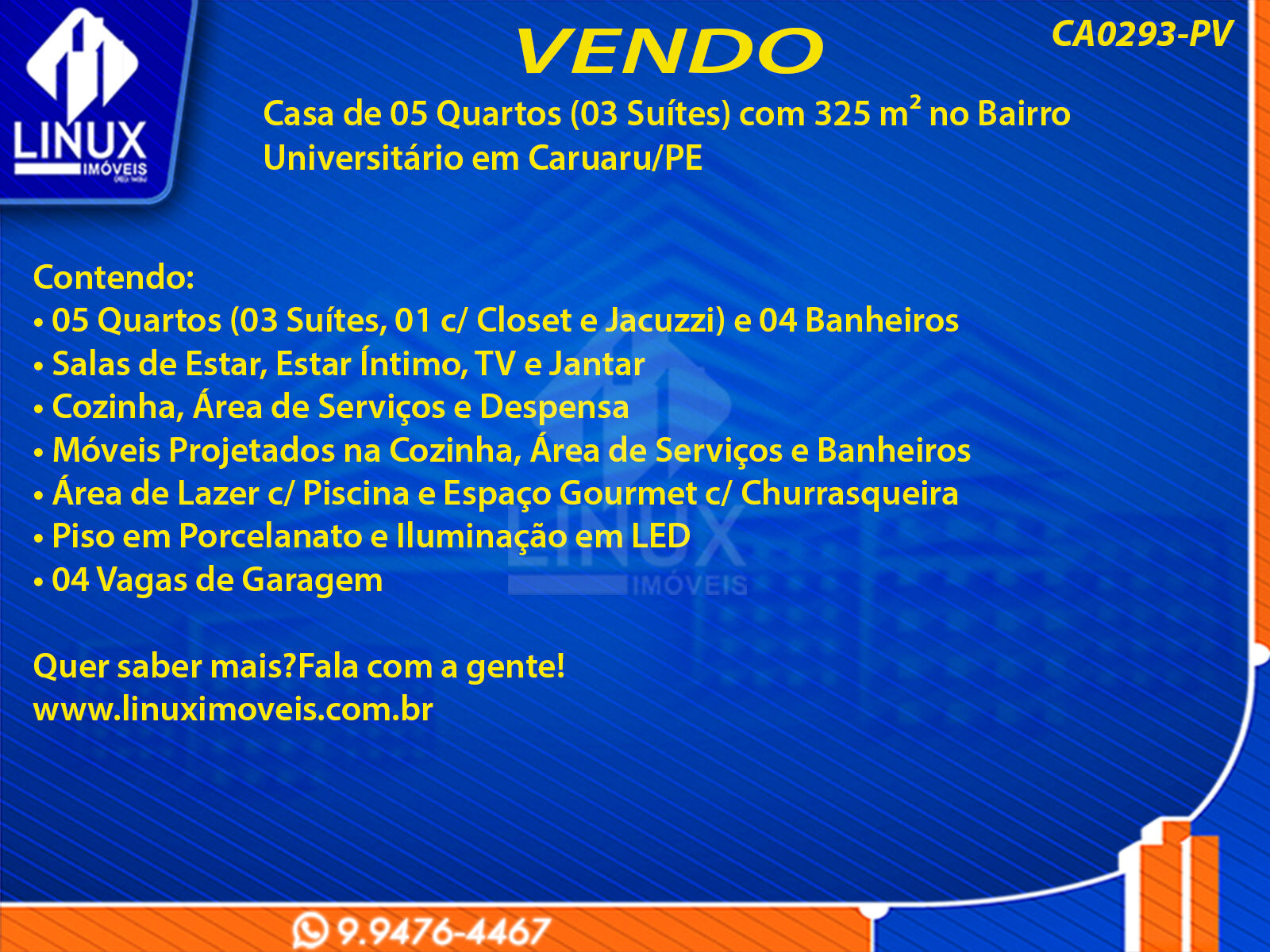 Casa de 05 Quartos (03 Suítes) com 325 m² no Bairro Universitário em Caruaru/PE