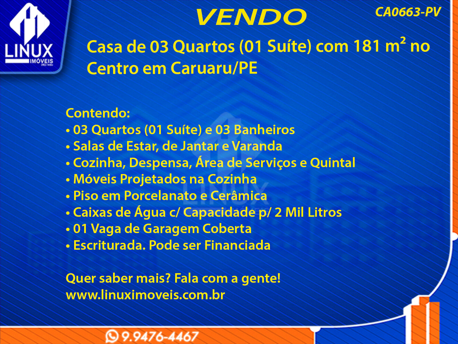 Casa de 03 Quartos (01 Suíte) com 181 m² no Centro em Caruaru/PE