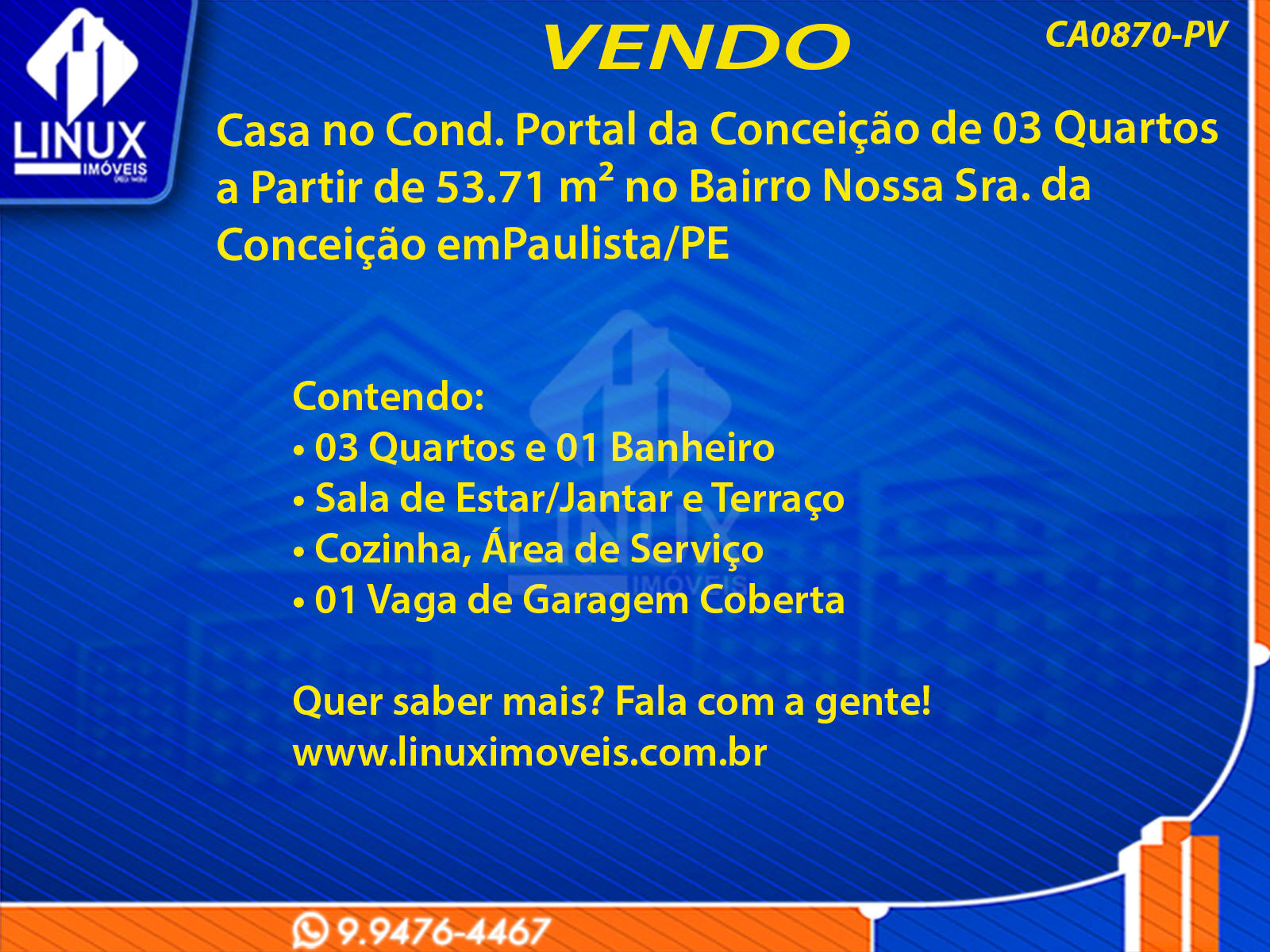 Casa no Cond. Portal da Conceição em Paulista/PE à Venda (CA0870-PV)
