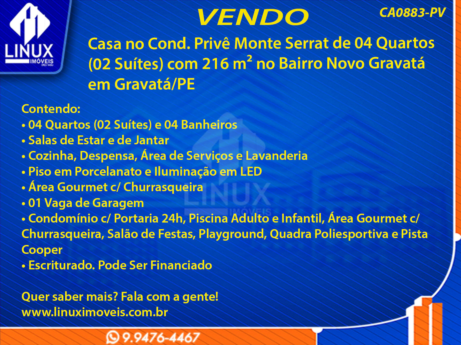Casa no Cond. Privê Monte Serrat em Gravatá/PE à Venda (CA0883-PV)